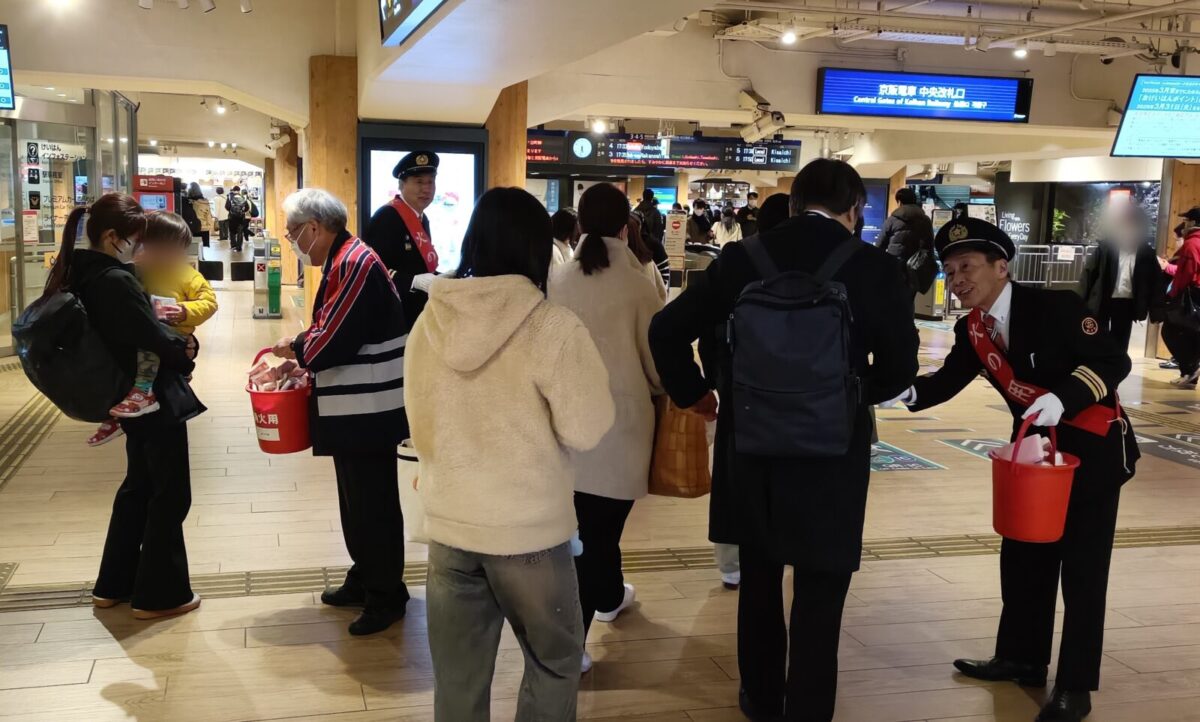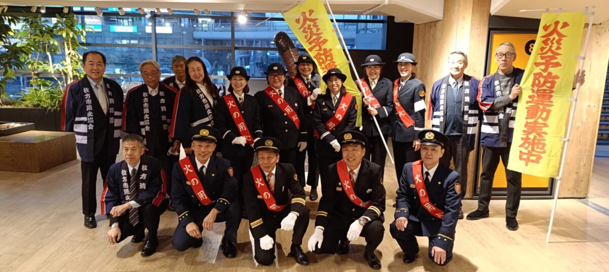 枚方市では、令和8年3月5日(木)帰宅で賑わう京阪枚方市駅コンコースにて、枚方寝屋川消防組合枚方消防署、枚方市防災協会、枚方市消防団合同で、市民の皆さまに火災予防を呼びかけるキャンペーンを実施しました。