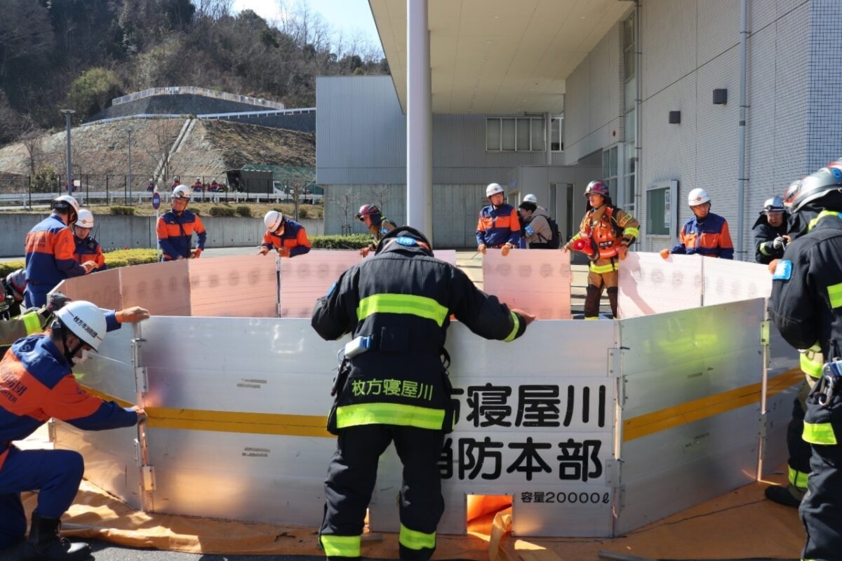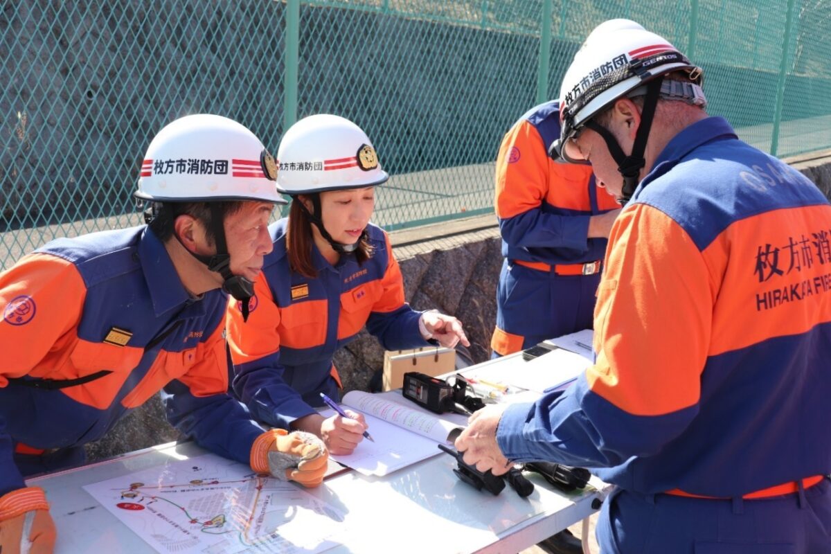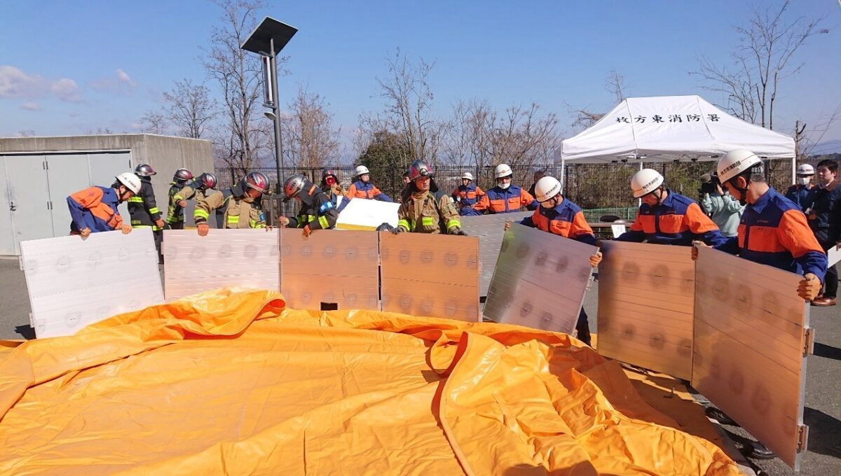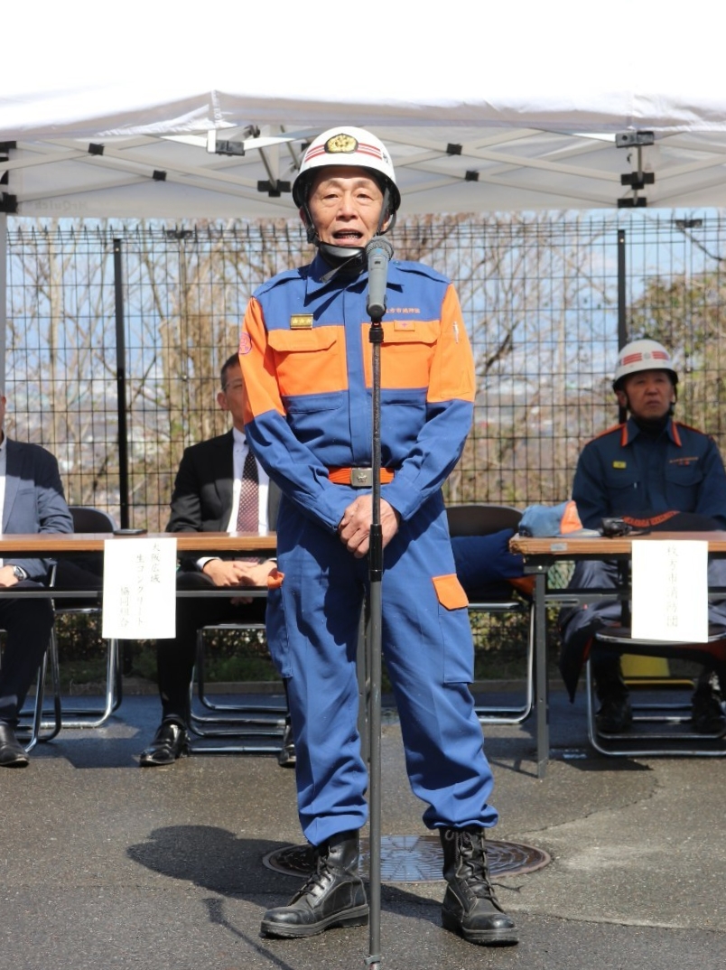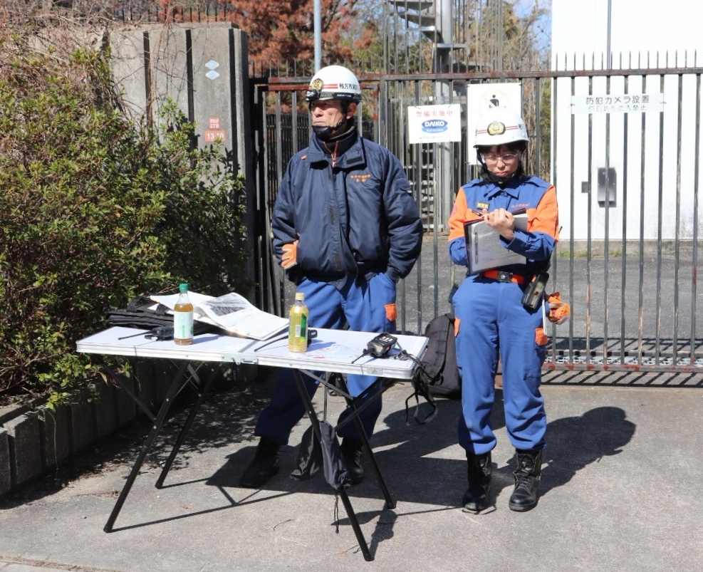 令和7年3月9日(日)、枚方市津田山手にある大阪府立北大阪高等職業専門校において、令和6年度 枚方市消防団山林火災防ぎょ訓練が枚方寝屋川消防組合枚方東消防署と大阪広域生コンクリート協同組合の合同により実施されました。