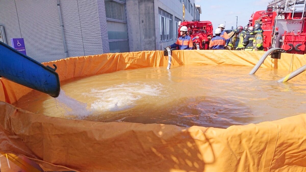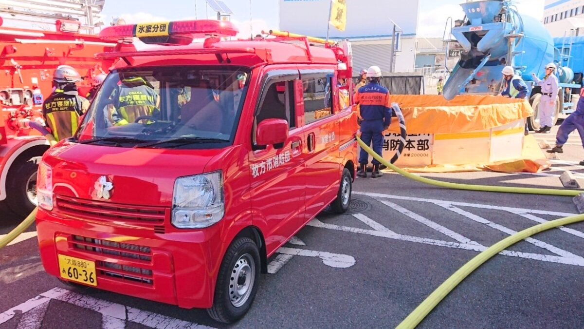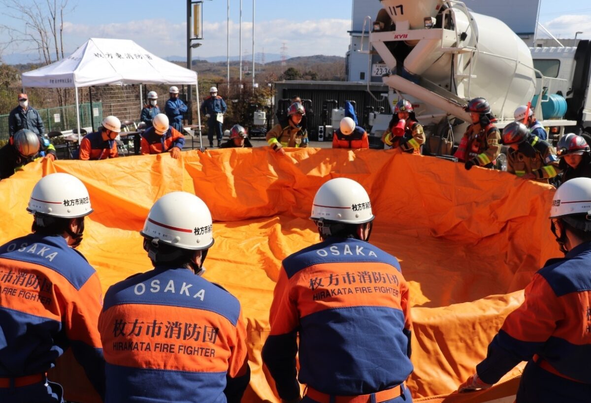 そして「災害時における消防用水の確保に関する協定」が締結した大阪広域生コンクリート協同組合との更なる連携強化を目的として合同訓練を実施するものです。