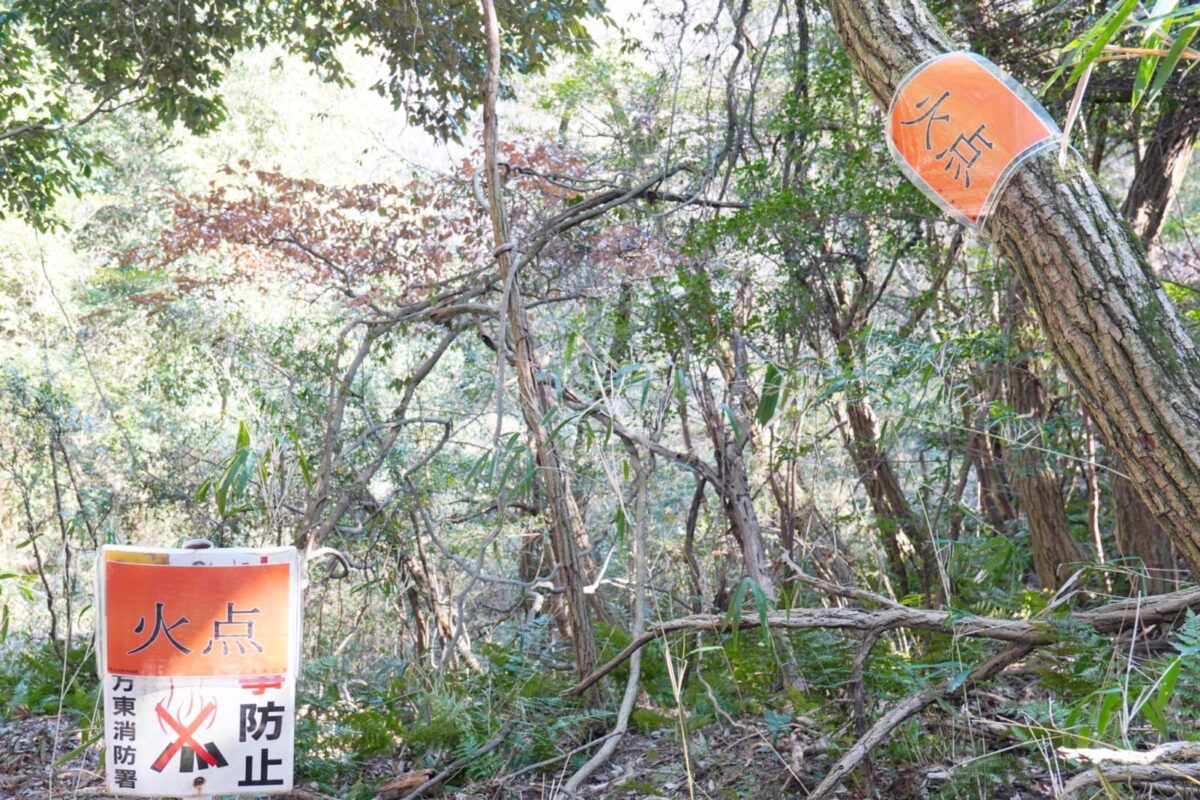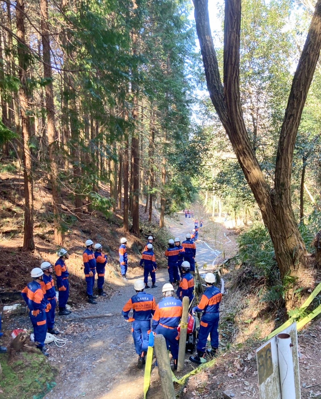山林の奥深いところに火点に見立てた場所に目標が設置されました。