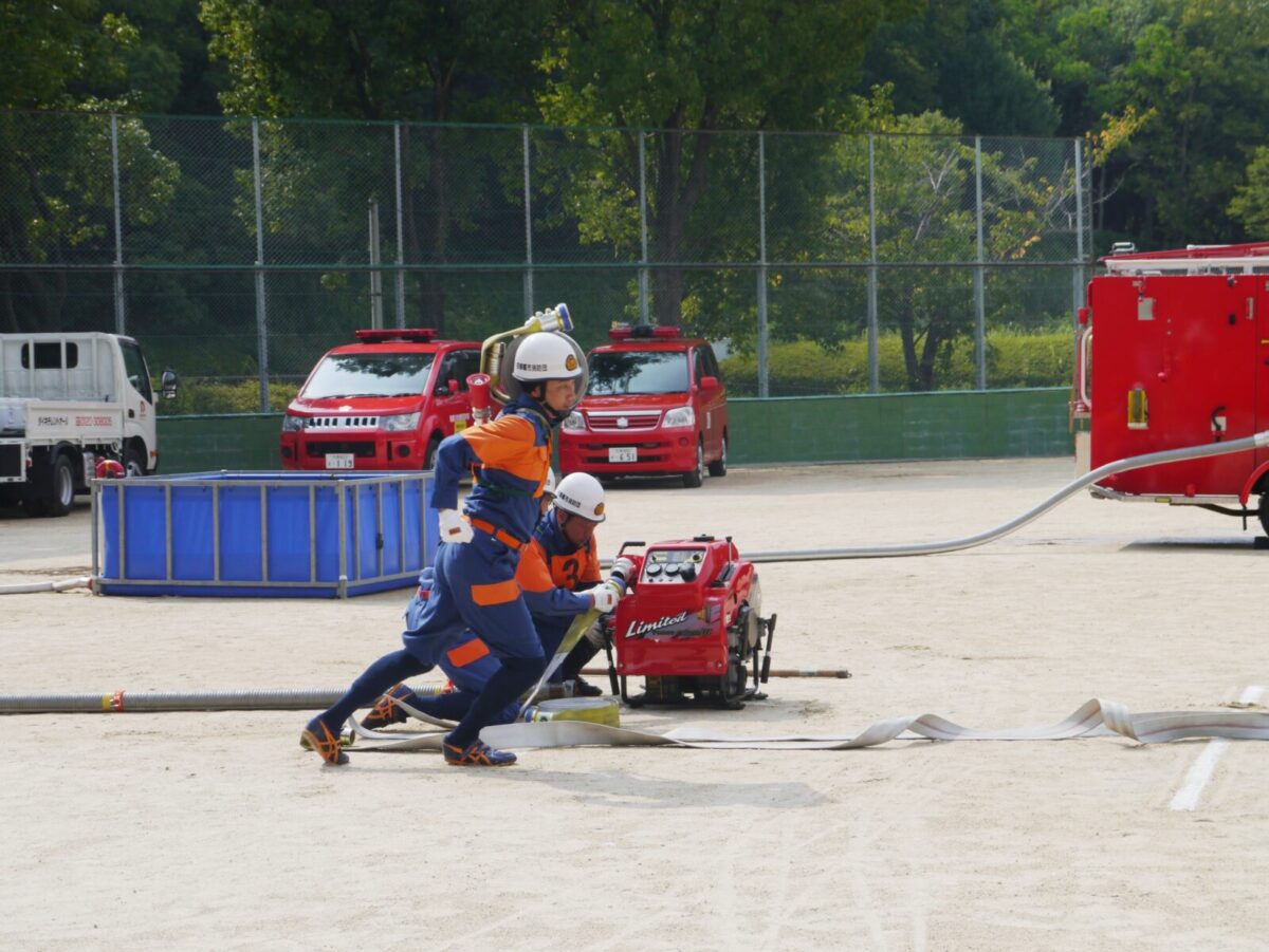 視閲が終わると、続けて大東市消防団と四條畷市消防団によるポンプ操法模範訓練が行われました。