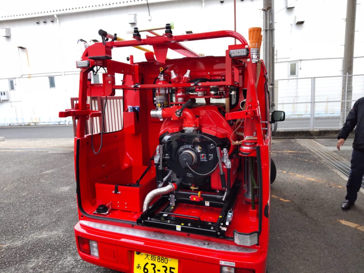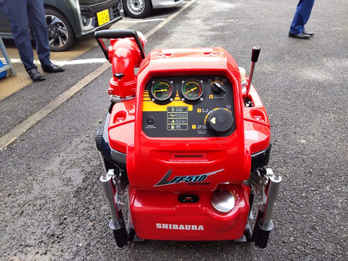 引き渡し式終了後、新しい車両の説明と可搬式ポンプの業者の方による説明がありました。
