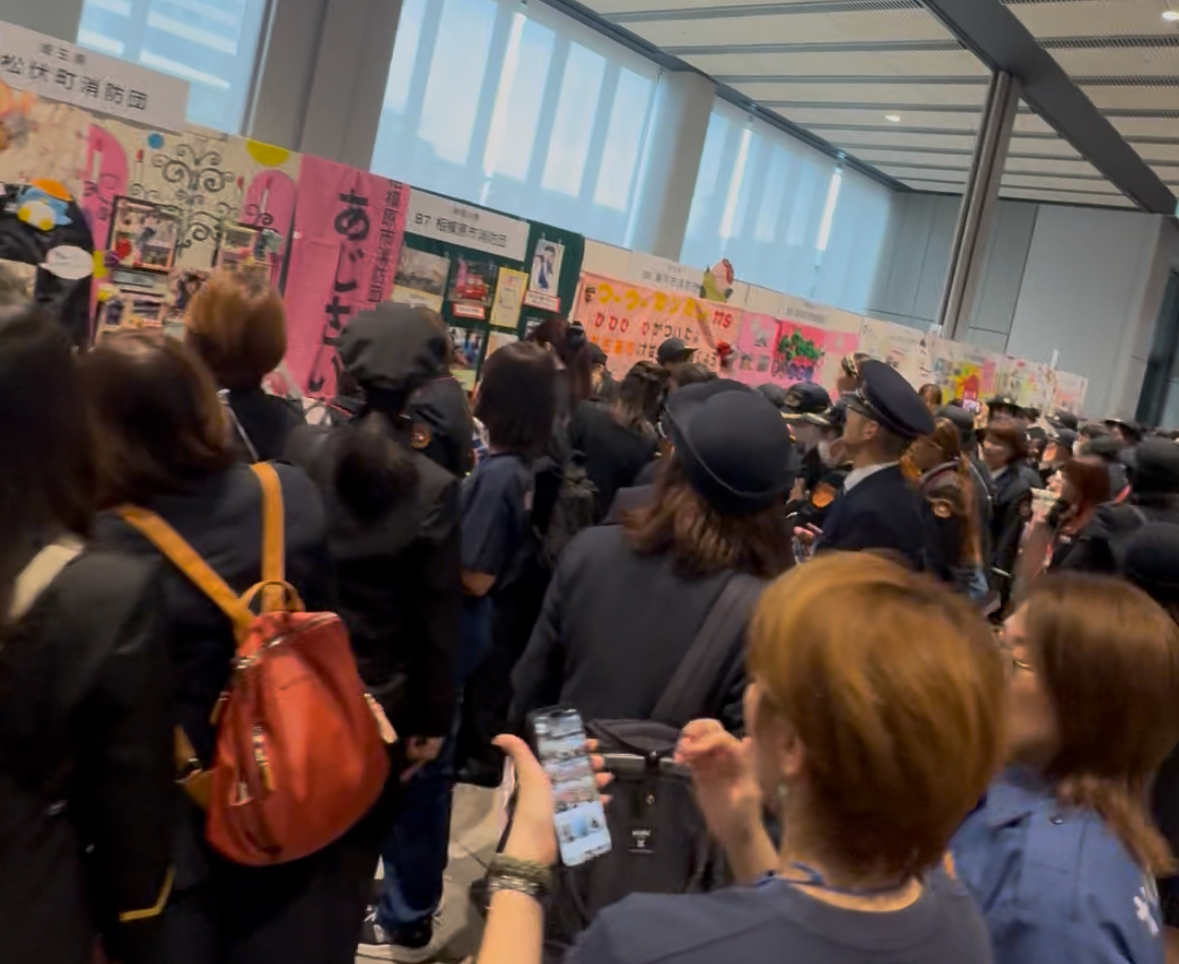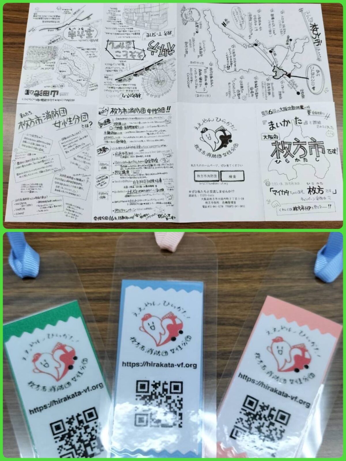 枚方市女性分団の『活動紹介の写真展示』と『枚方市の紹介ミニ冊子500部』『枚方市消防団ホームページのQRコードを貼り付けた栞500部』を持ち長崎大会に、中団長はじめ女性団員4名、計5名で参加させていただきました。展示の準備もあり早朝から枚方を出発し移動時間6時間近くかかりましたが時間を無駄にすることなく現地での動きや流れなど打ち合わせであっという間の6時間でした。