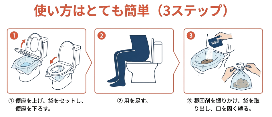 まず準備しておきたいのは「携帯トイレ」「簡易トイレ」です。