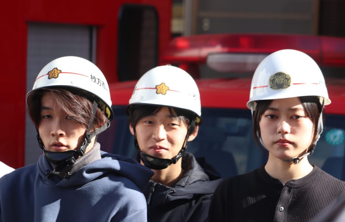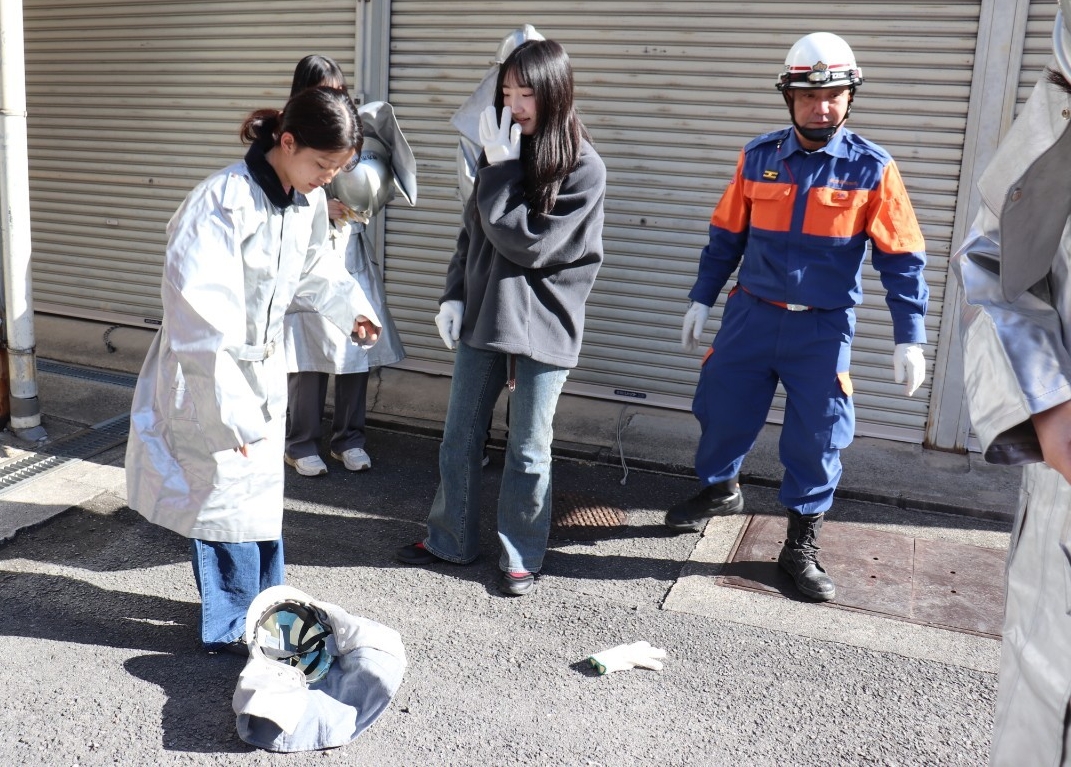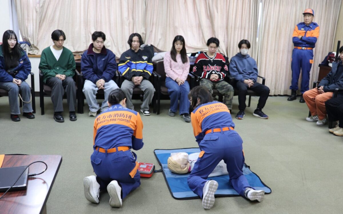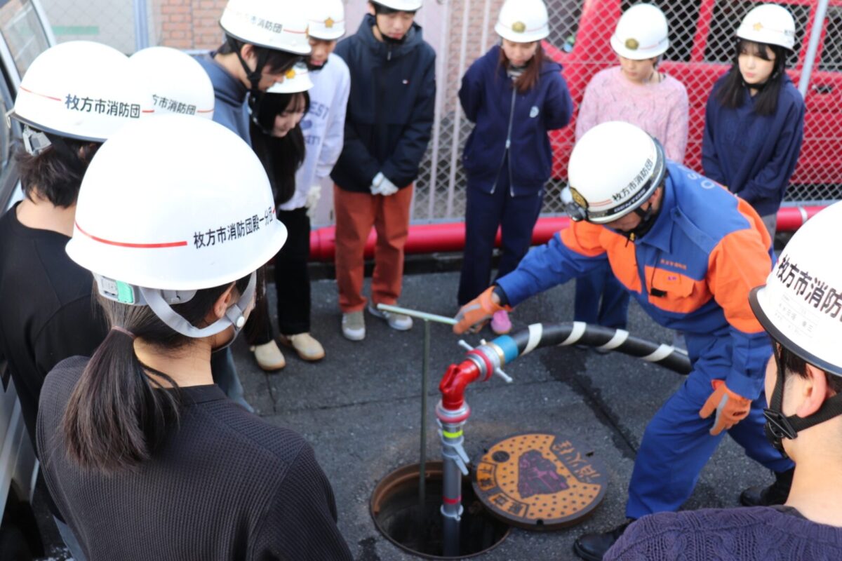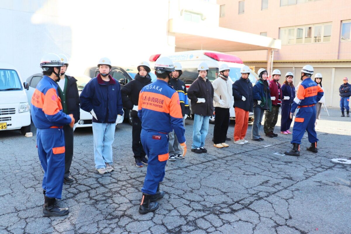 枚方市消防団では、令和7年1月18日(日)に枚方寝屋川消防組合枚方消防署において、関西外国語大学のボランティアサークル「WiZ HABITAT(ウィズハビタット)」に所属する学生の皆さんによる消防団体験会を実施しました。