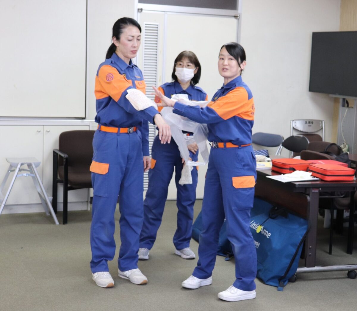 午前の部を担当する指導員は、同校所在地を管轄する山田分団と殿一分団から派遣、午後の部は、同校を卒業した団員含む指導員を女性分団から派遣しました。