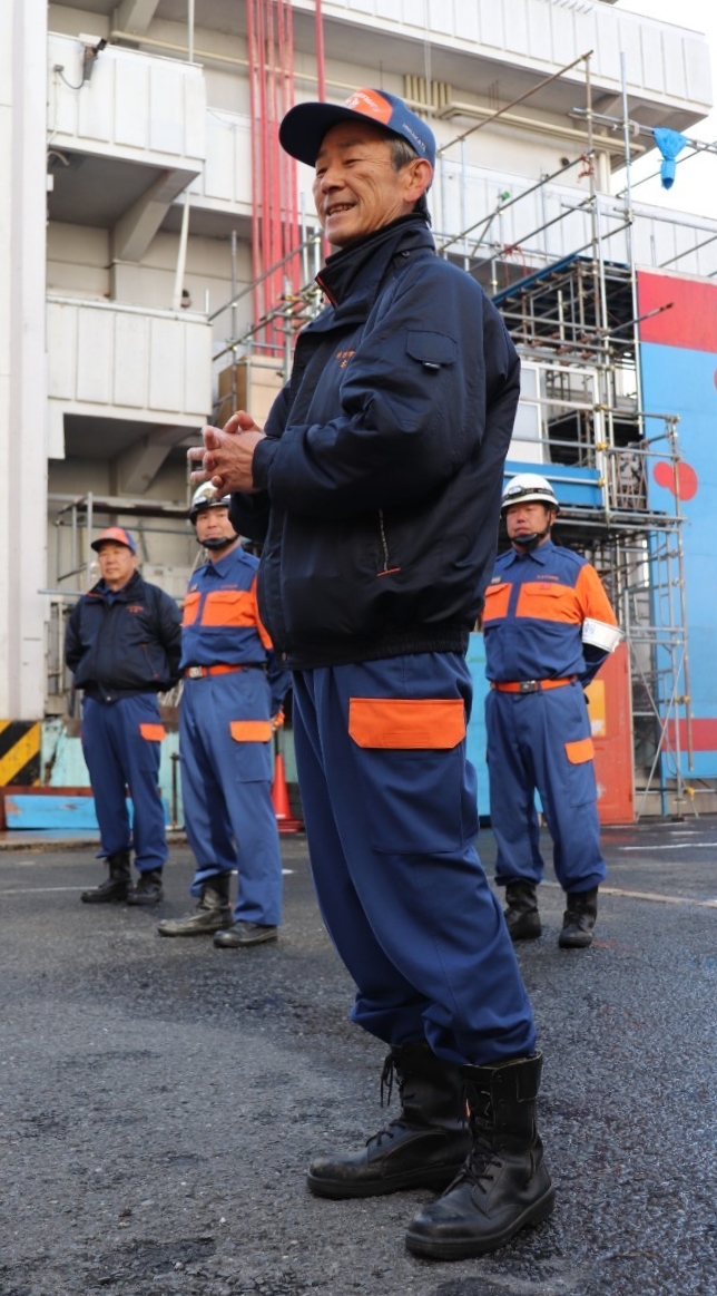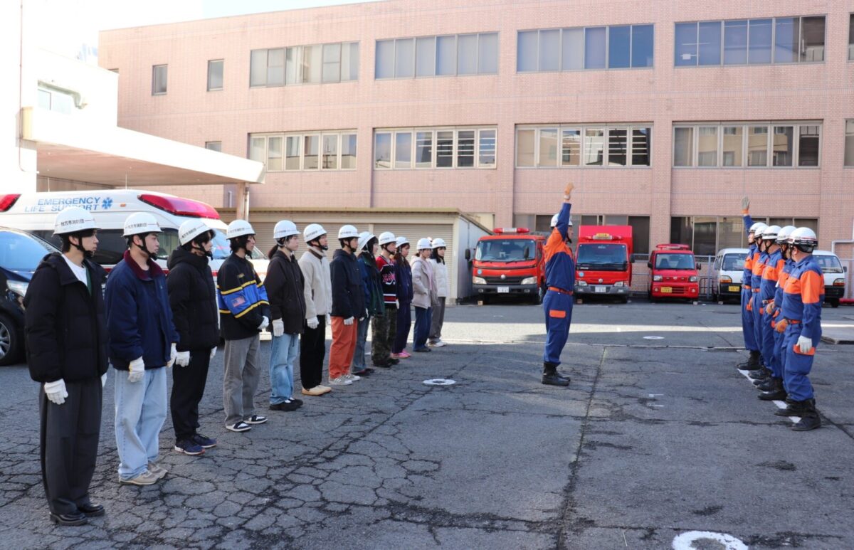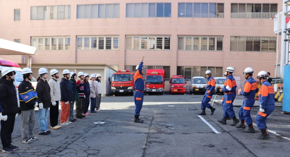 指揮者の大きな声による号令と機敏に動く指導員に、緊張の表情から驚く表情に変わった学生さんもいましたが、すぐに真剣な眼差しに戻ります。