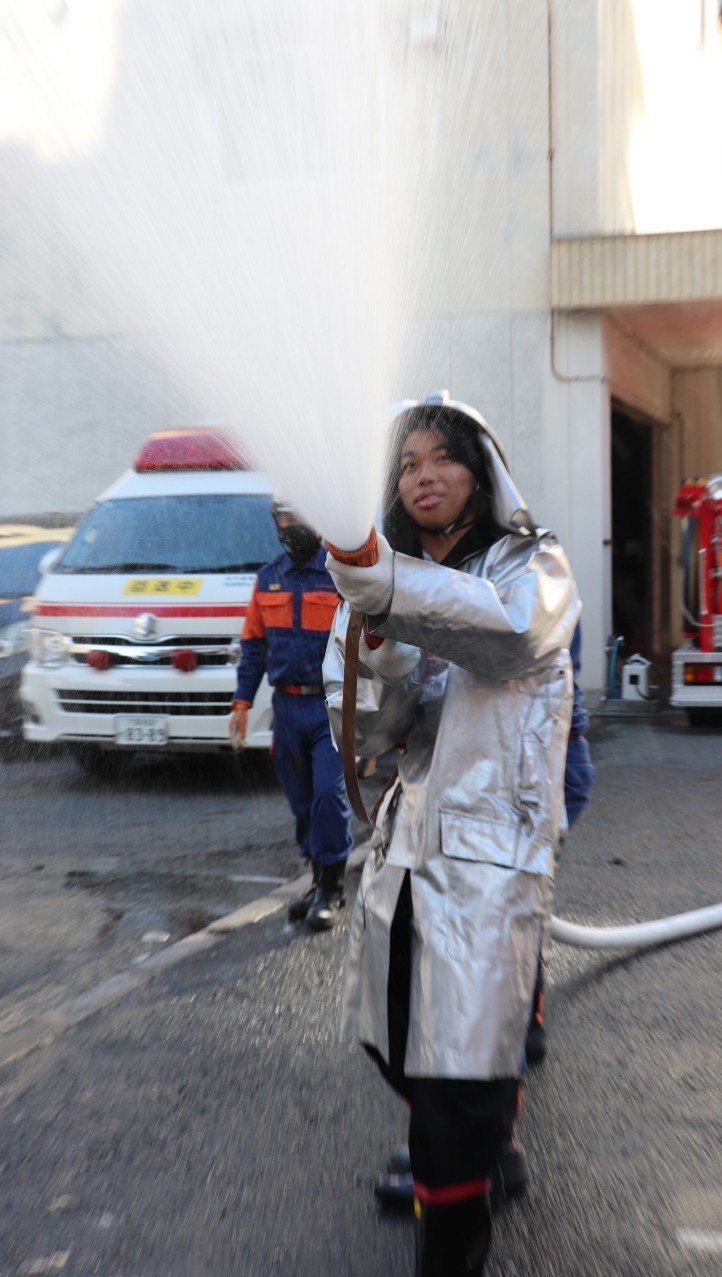 ただ漠然と放水するだけでなく、消火を行う対象物の性質や燃焼状態で放水のパターンを変更するなど、物理的な性質の観点からもその理由を学びました。