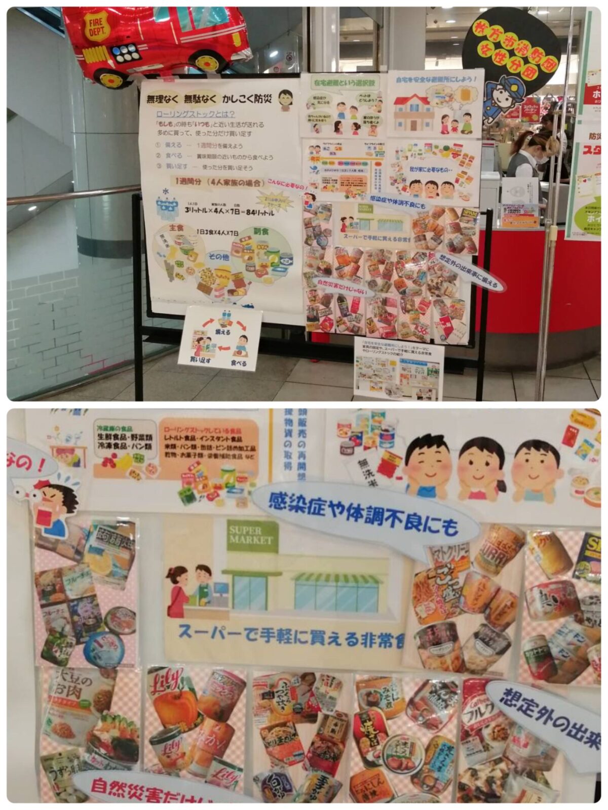 展示では、各家庭で今すぐ始めることができる防災の備え「ローリングストック」について紹介させて頂きました。