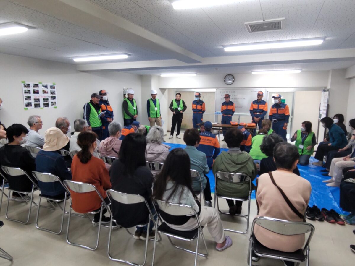 朝日プラザ香里菊丘マンションの自治会は、自主防災訓練や災害発生時に於ける対応を熱心に取り組んでおられ、災害発生時には、まずマンション内で出来る事や取り組む事などを、お話しされていました。