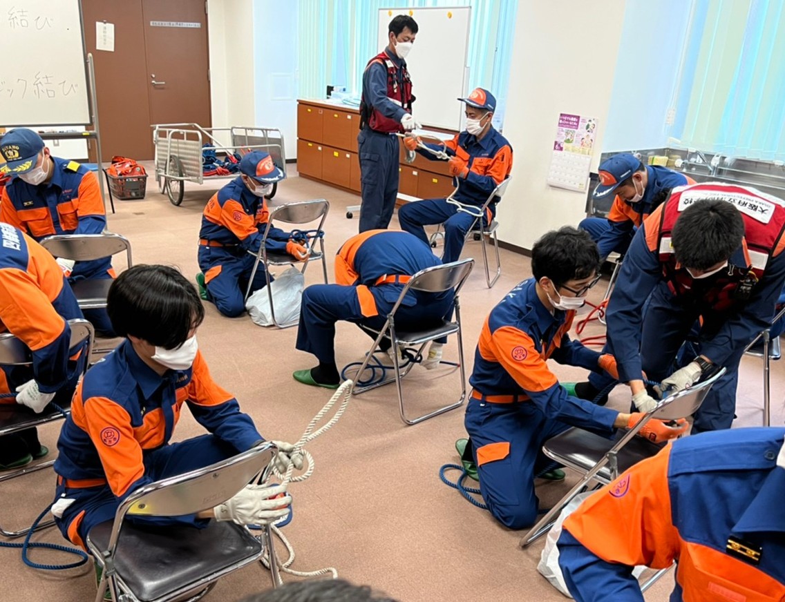 今回指導を受けた結索方は、特に使用頻度が多く基本的な結び方である「本結び」「もやい結び」「巻き結び」「プルージック結び」などで、初めて結索を経験した受講生も、教官の指導のもとにしっかりと結索技術を習得しました。
