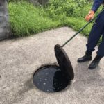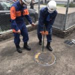 指導のあとは、実際にマンホールの蓋を慎重に開け、水槽内の水が規定の水位で満たされているかを確認し、水質等の状態に付いても確認を行いました。