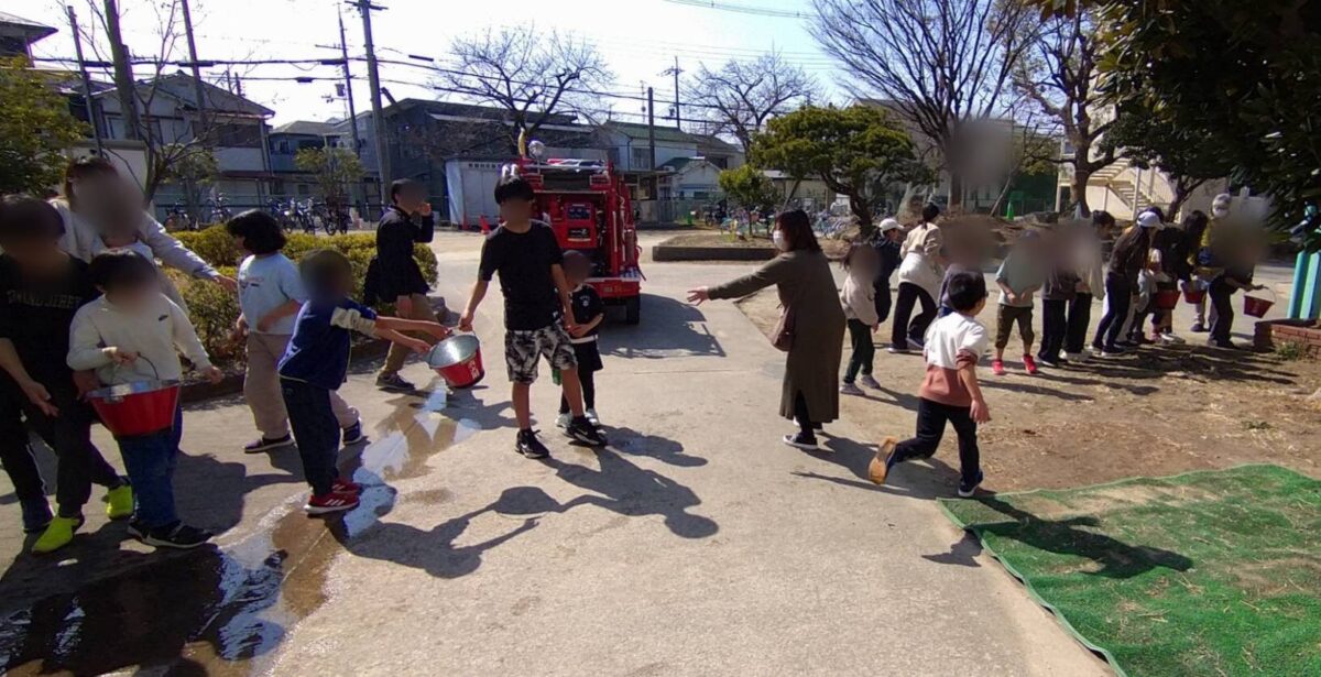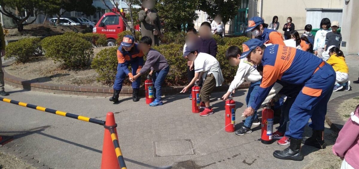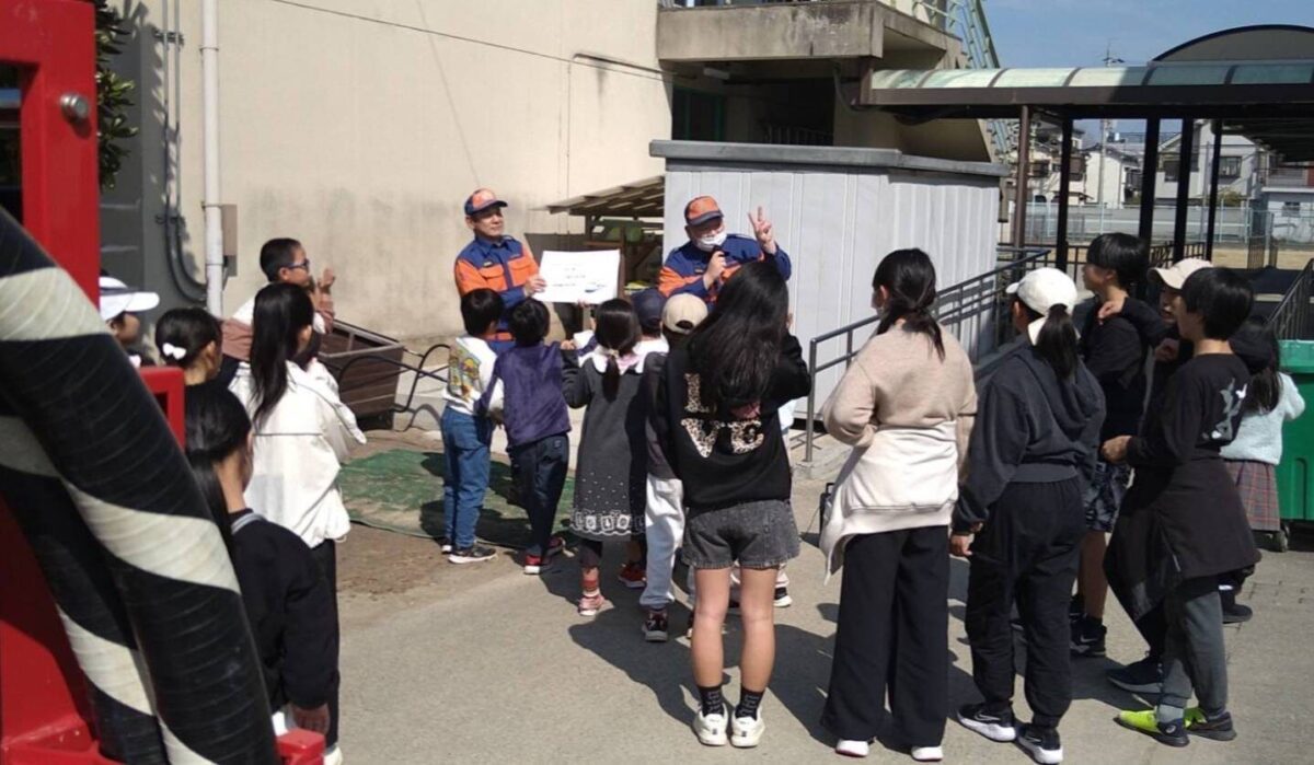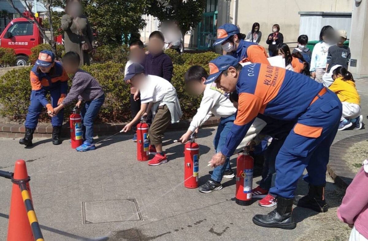 2024年3月1日(土)牧野小学校いきいき広域運営委員会主催「いきいき防災小学校」が開催され、枚方市消防団から殿二分団・女性分団が出動し、子ども達と防災について学ぶ取り組を行ないました。