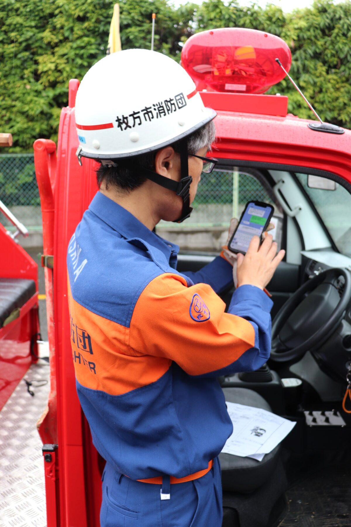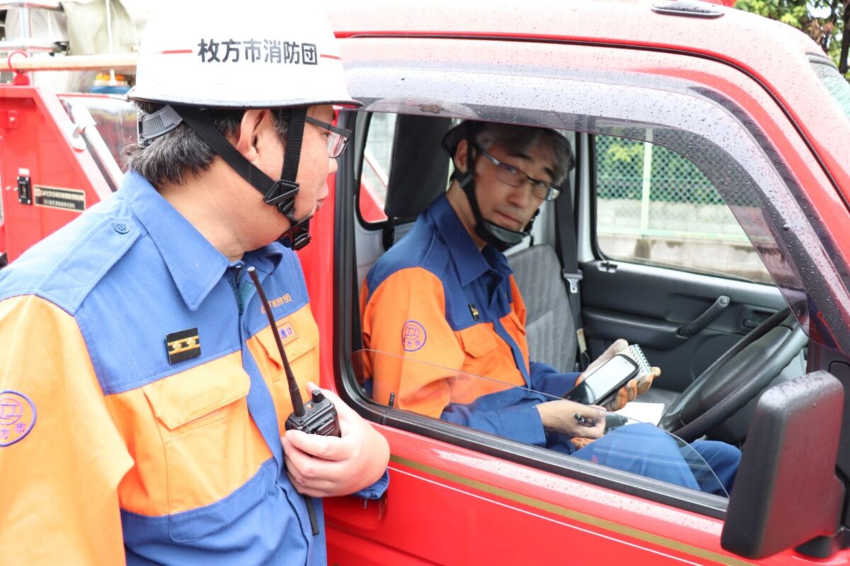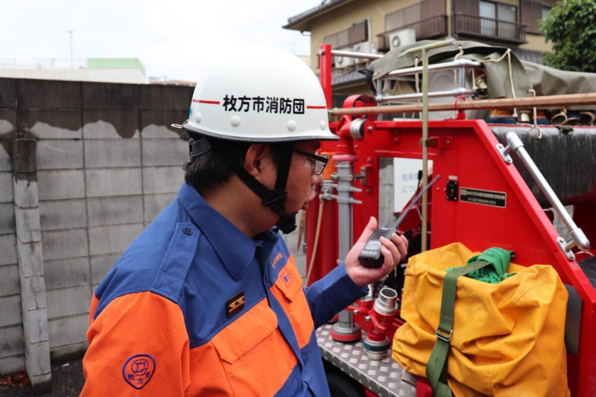 今回、取材の対象になった枚方市消防団 蹉跎分団は、枚方市消防団の中でも一番南側に位置する分団であり、寝屋川市と高槻市に隣接するほか一級河川の淀川も管轄する分団です。