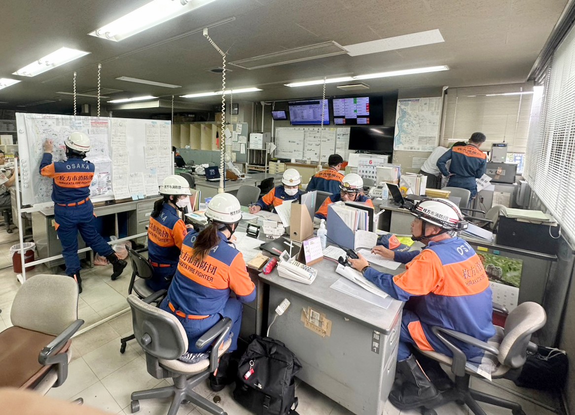 この非常時参集訓練は、令和5年6月11日(日)の午前9時頃、生駒断層帯でマグネチュード7.3の地震が発生し、枚方市全域で最大震度6強を観測したという想定で実施しました。