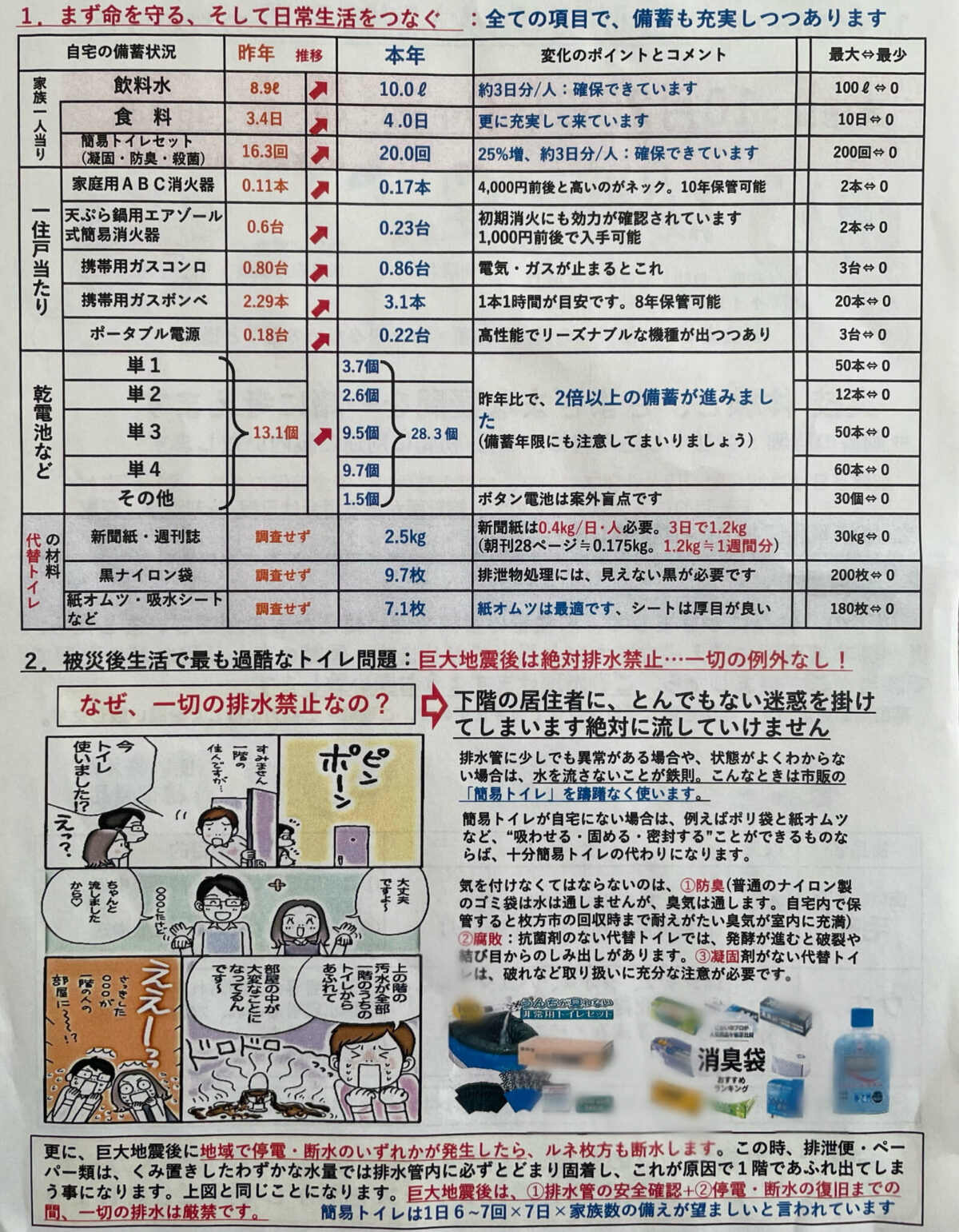 事前に全住戸の皆さんに備蓄状況などの回答をいただき、現時点での調査も行われています。