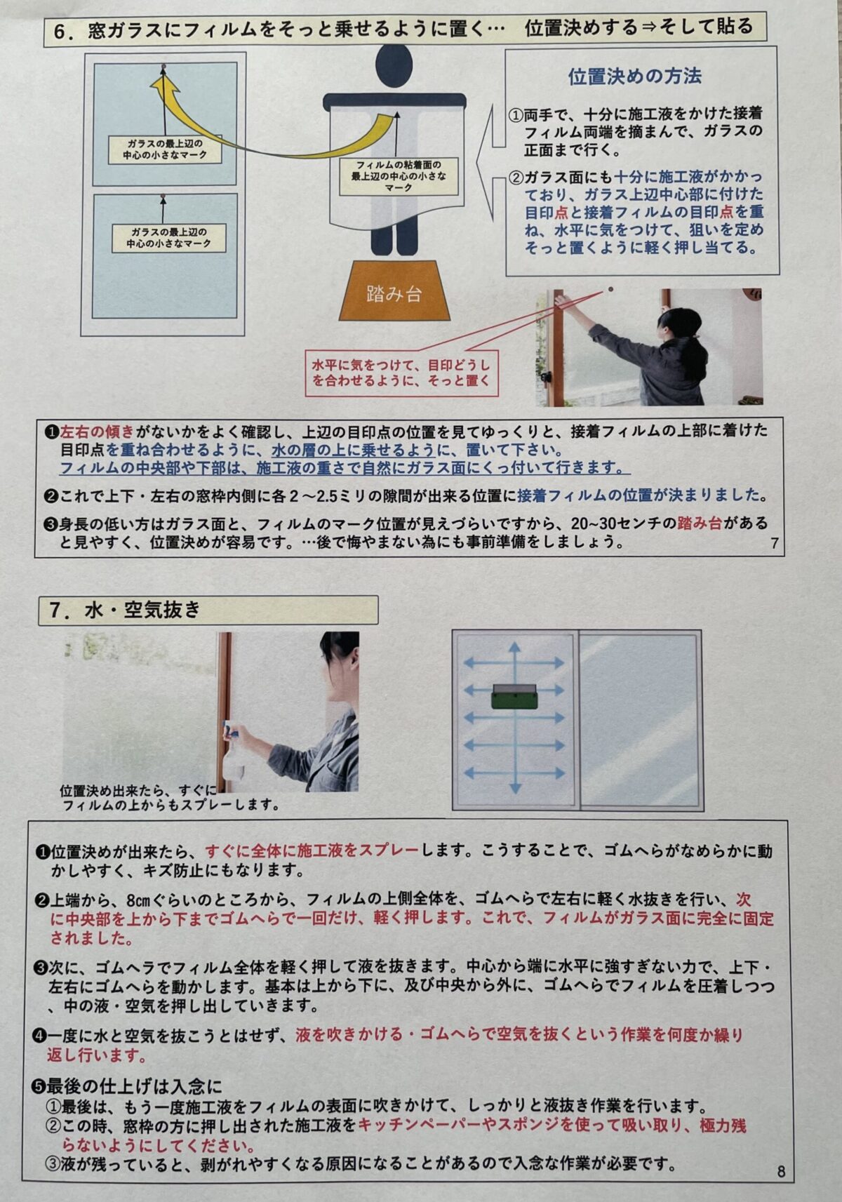 試食会と同時進行で、飛散防止フィルムの選び方や貼り方を説明。
