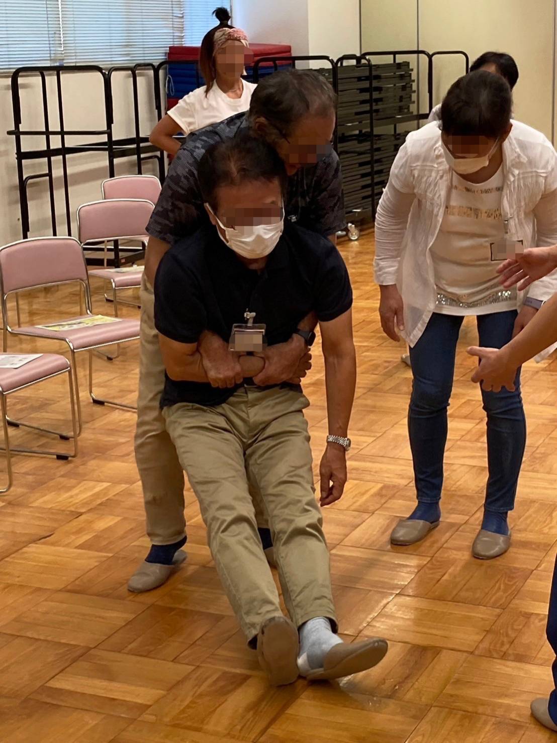 そして担架や道具がない時に、人の力だけで行う搬送方法を身体に負担をかけないコツを交えてお伝えし、皆さんでチャレンジです。