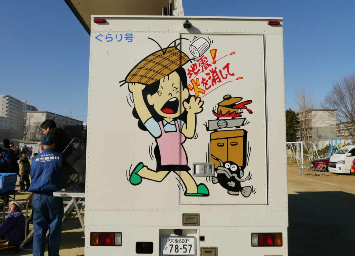 枚方寝屋川消防組合は、地震車(地震体験車)「ぐらり号」を保有しています。