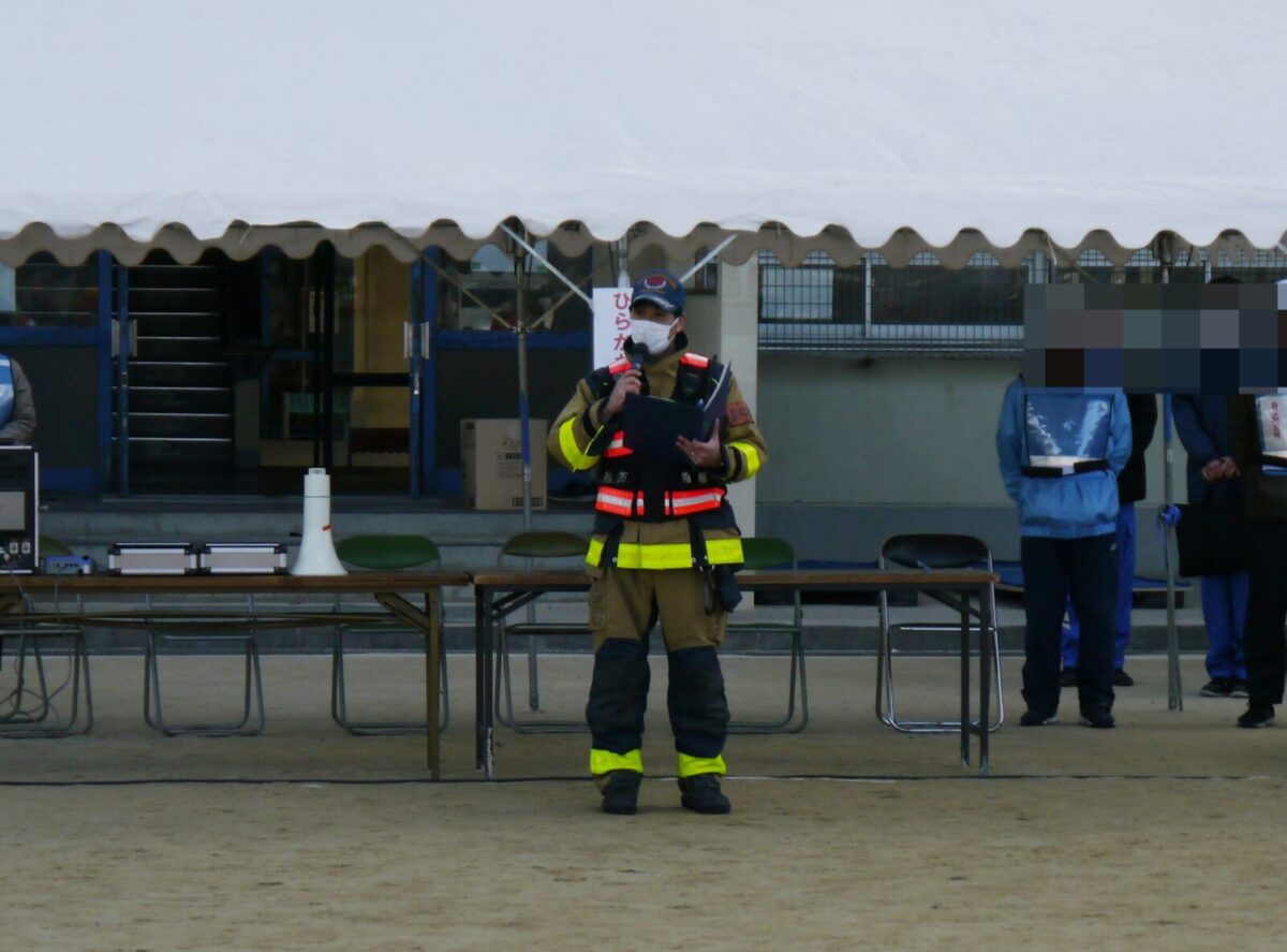訓練の最後には、枚方市消防団の平田副分団長が講話を行ない、枚方消防署指揮隊の大西様からは総評をいただきました。