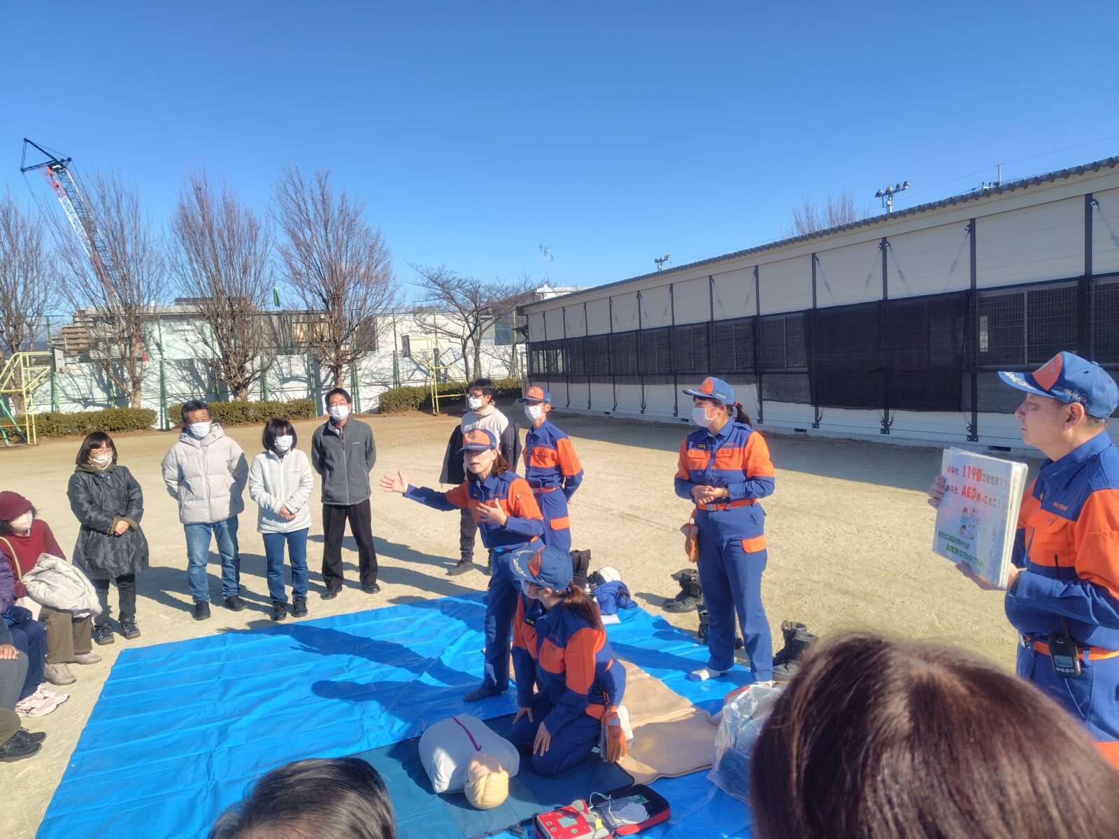 倒れた人を発見し救急隊が到着するまでの一連の流れを実演しました。
