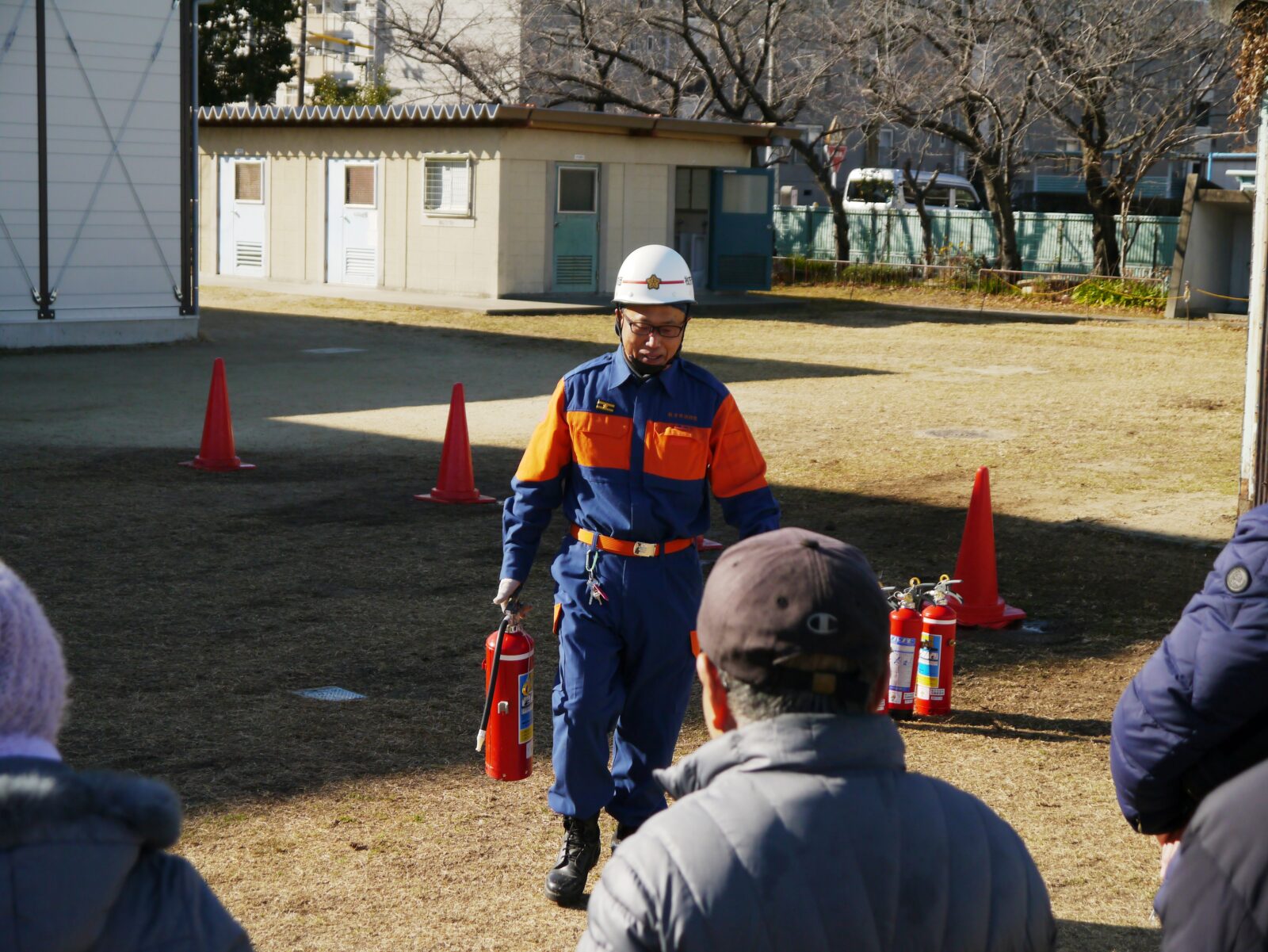 訓練用の水消火器を使って訓練を行います。