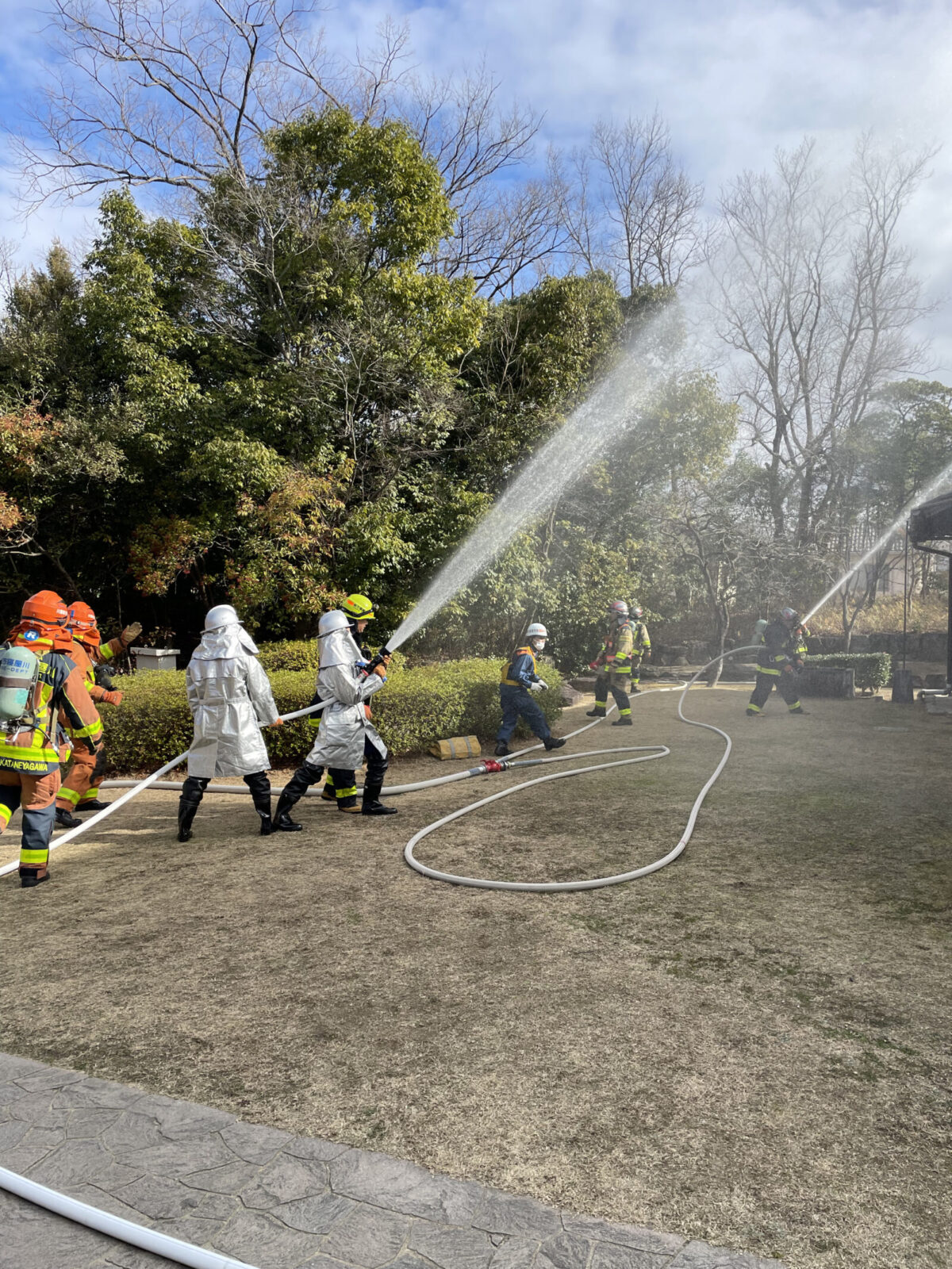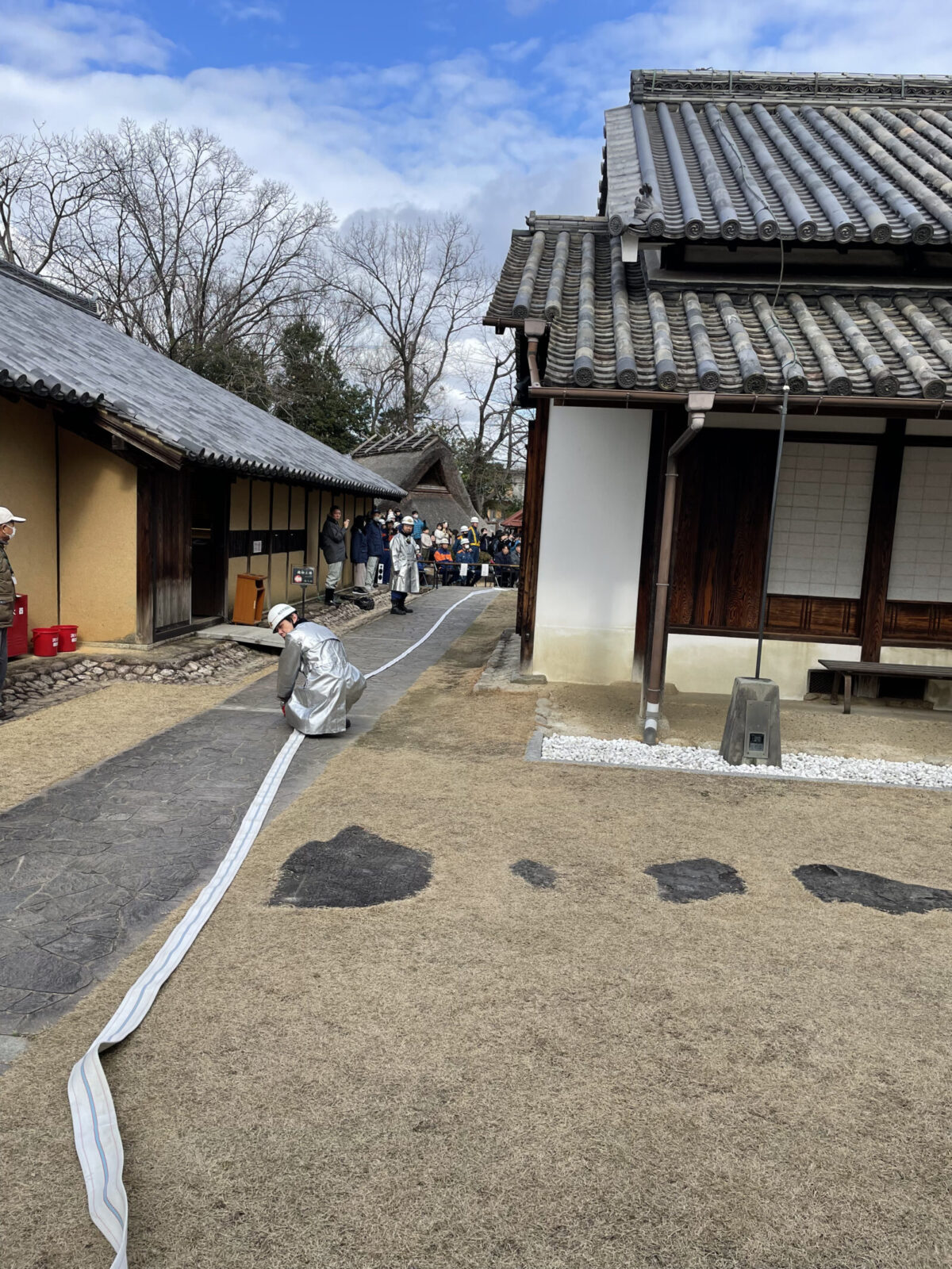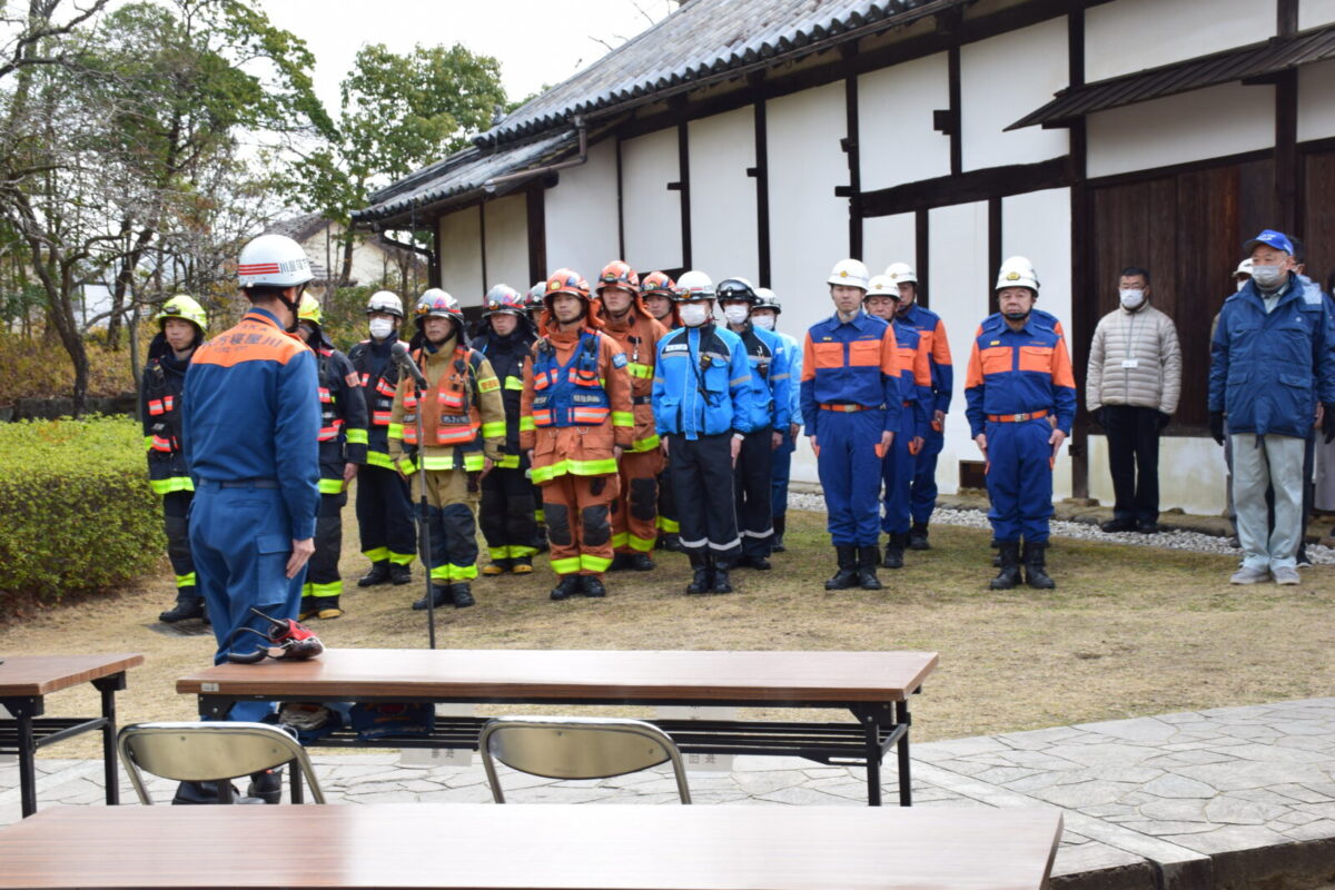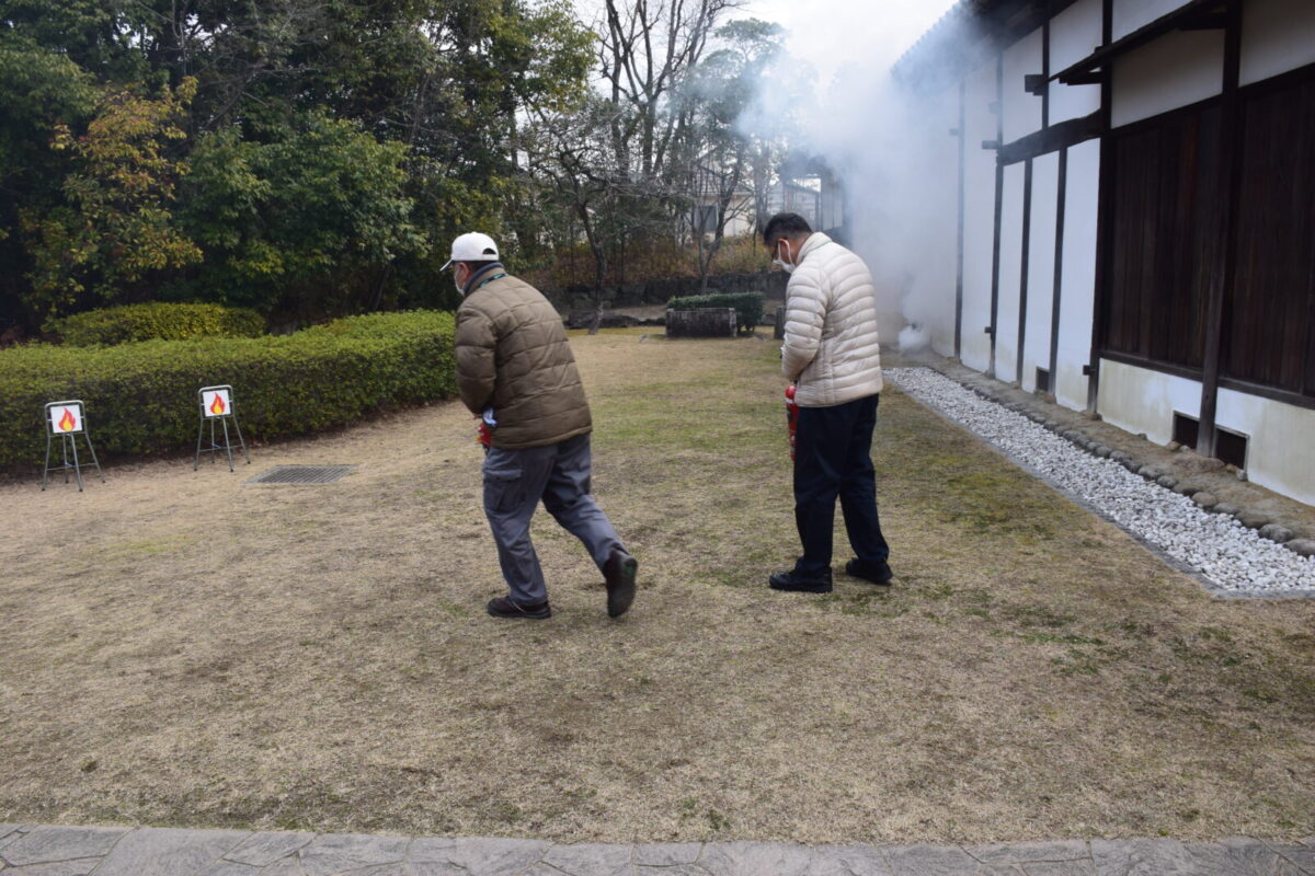 枚方市消防団、枚方寝屋川消防組合と合同で文化財を火災から守る訓練をを行いました。(令和5年1月27日)
