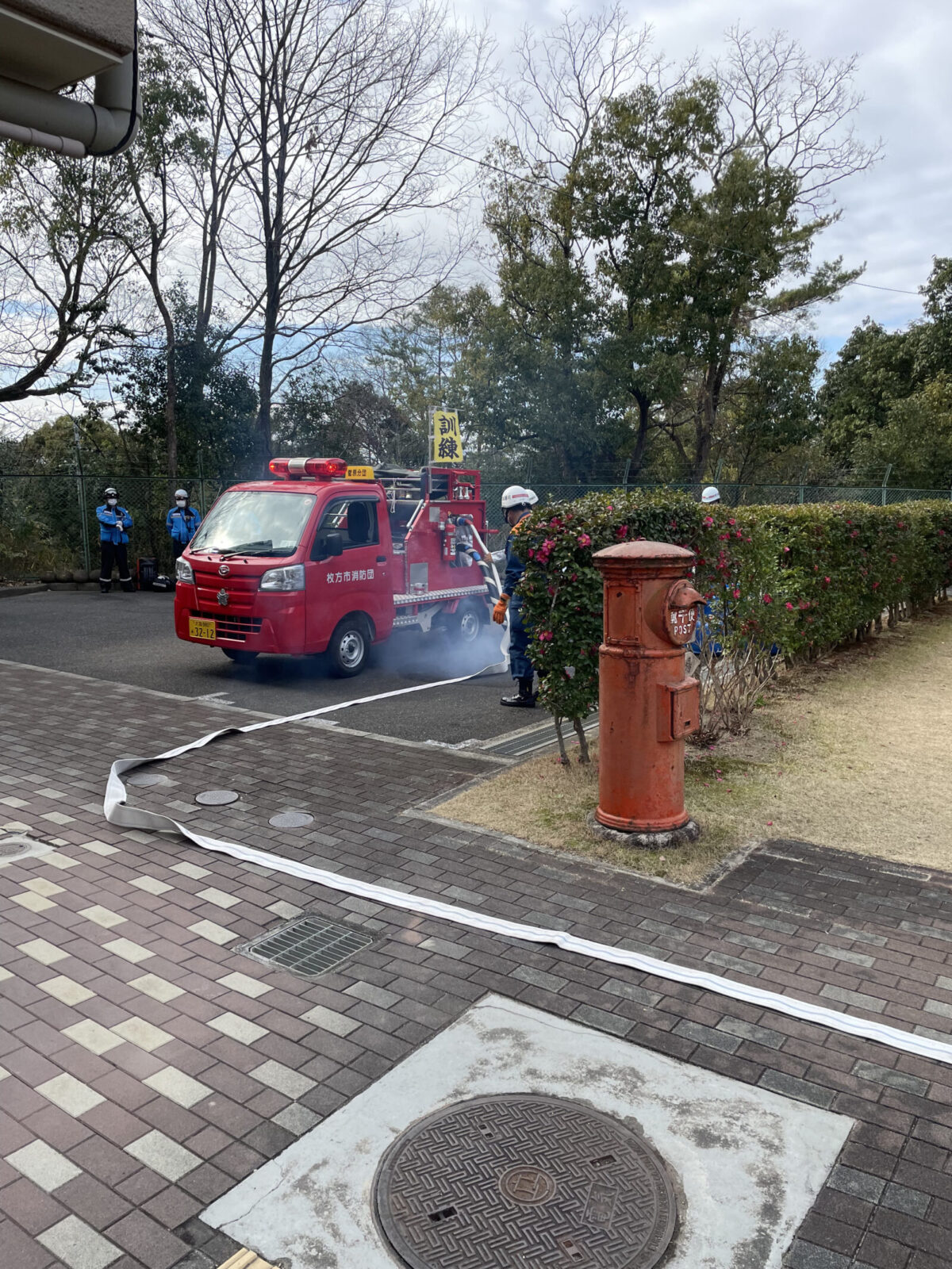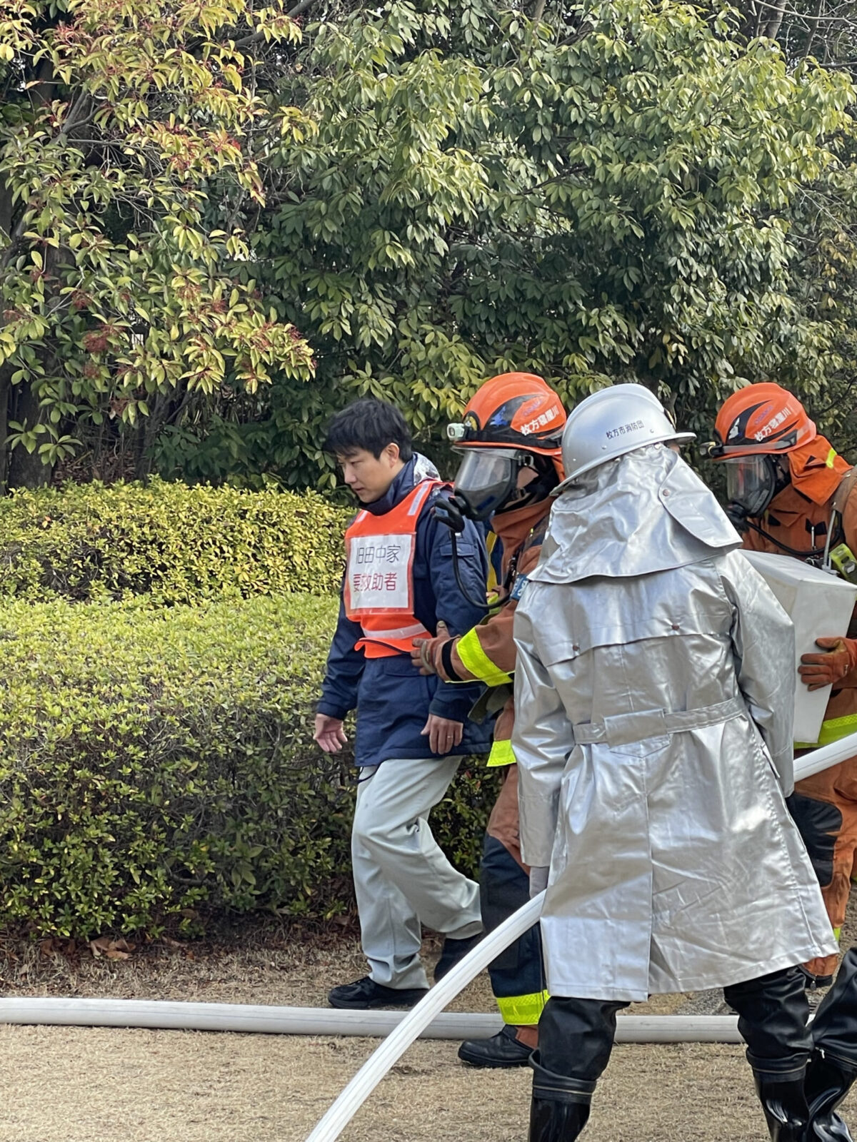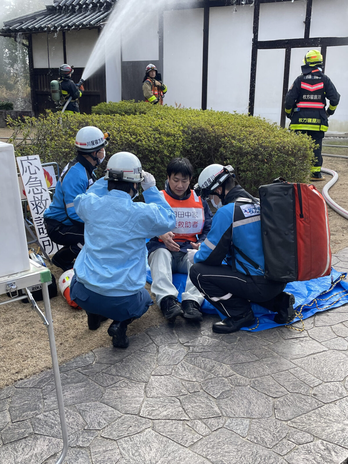 枚方市消防団、枚方寝屋川消防組合と合同で文化財を火災から守る訓練をを行いました。(令和5年1月27日)