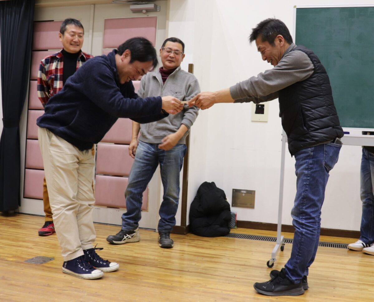 この競技に関しては、ほぼ皆さんが初体験でしたが、勝利を引き寄せたのは川越分団でした。懇親会の際に「勝因は?」と尋ねると「欲がなかったことです」とは谷村班長。ルールも知らずに大会に臨み、団本部と事務局のチームに勝利して8試合で計397点を獲得しました。表彰式で中団長から金一封をいただかれましたが、大欲は無欲であることを川越分団から教わりました。