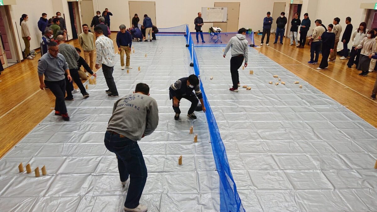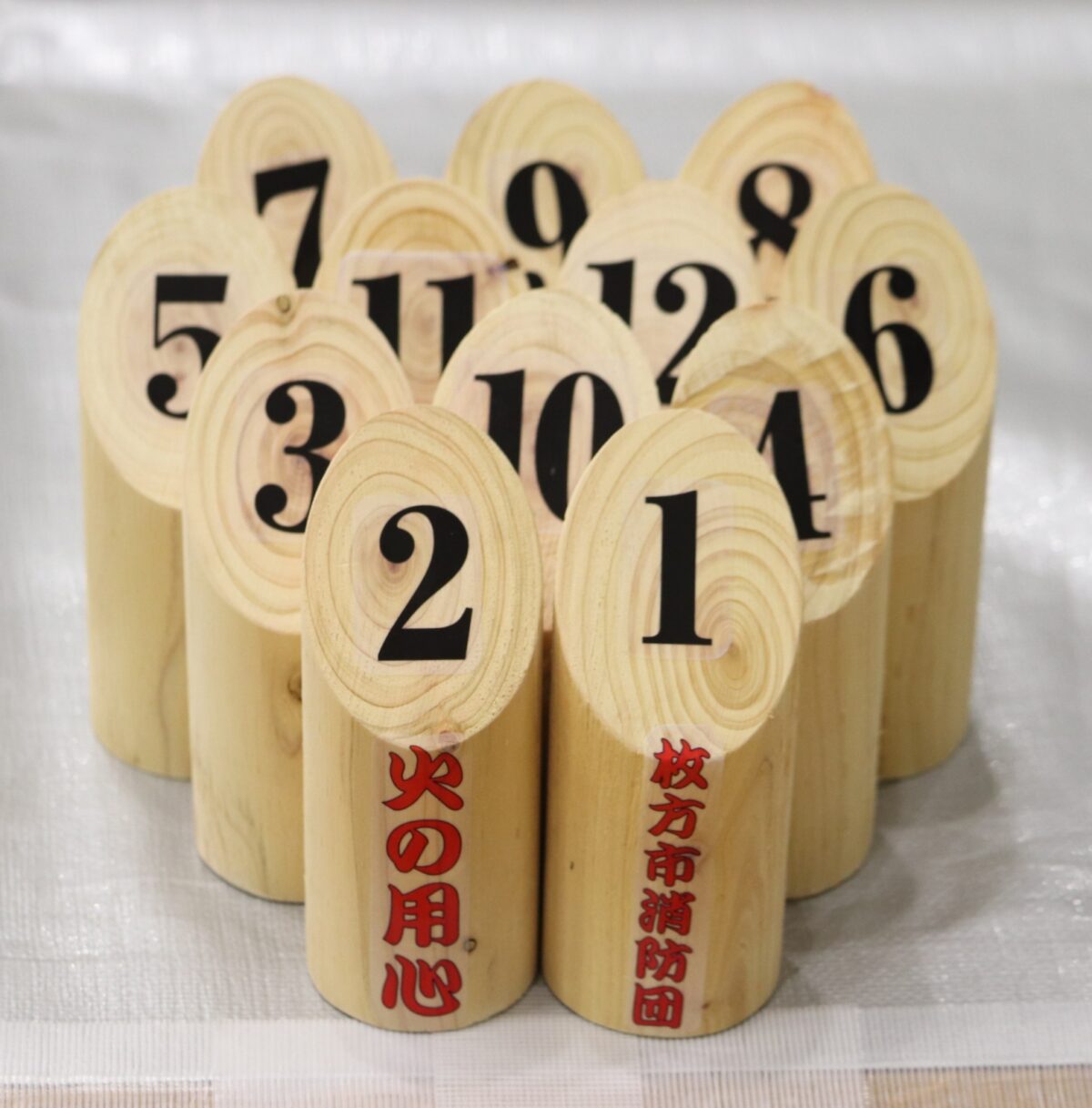 強い寒冷前線が居座った三連休の中日、旧メセナ枚方2Fメセナホールに於いて「モルック大会」が開催されました。枚方市消防団のレクリエーションと言えば「ボウリング」が長年恒例となっていましたが、昨年から慣れ親しんだボウリング場が閉鎖・解体となったことで、団幹部のみなさんが交通の便が良く屋内で開催できるレクリエーションを検討して決定したのがこの『モルック』です。