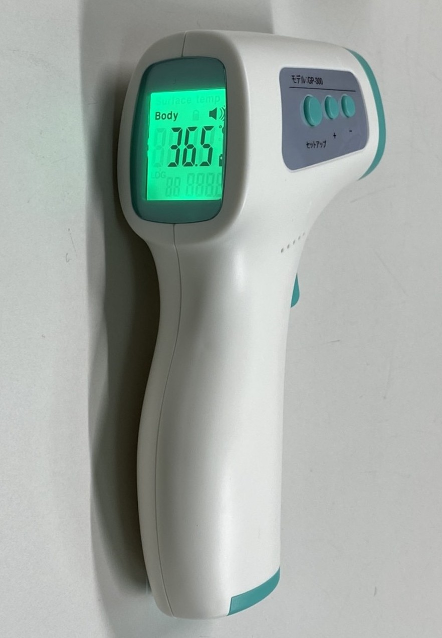 現在、新型コロナウイルス感染症拡大防止の観点から消防団活動に制限される中にありますが、消防車両の保守・管理のため必要最小限の運行が求められるため、これに従事する団員は消防車両に乗務する前にこの赤外線体温計を使用して体内の温度を検温し発熱症状の有無を確認します。