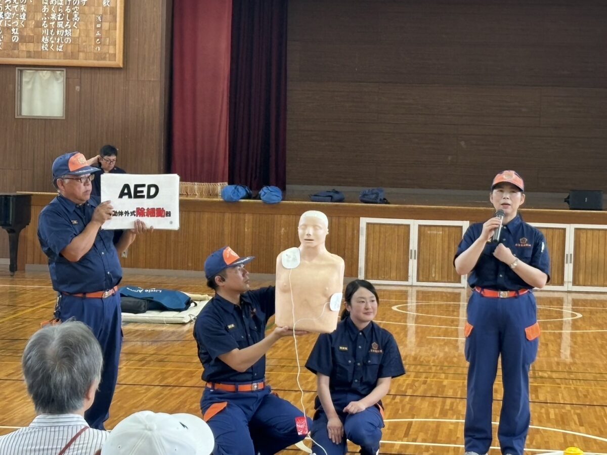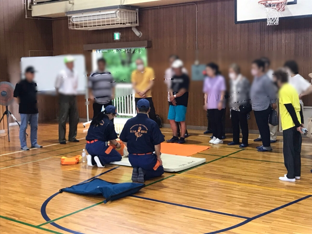 川越小学校区のみなさんで、倒れた人を発見し救急隊が到着するまでの一連の流れを行っていただきました。