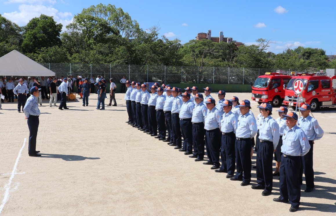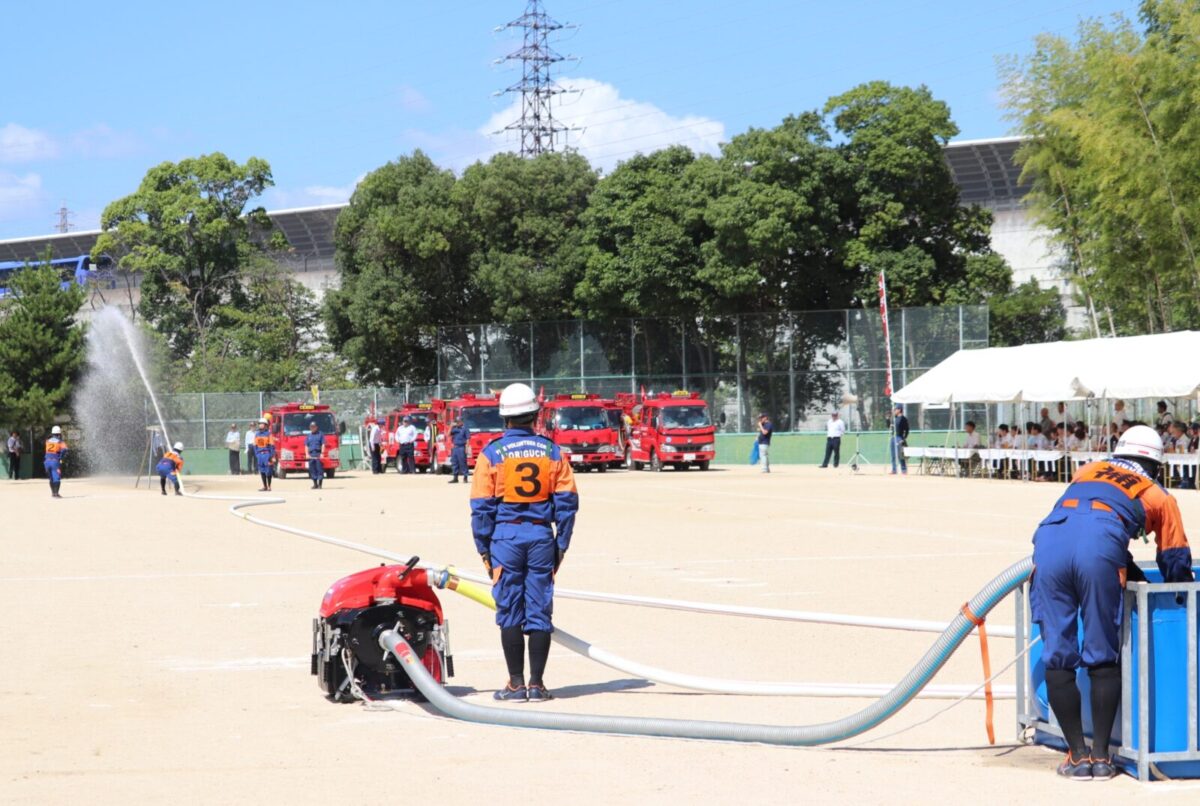 ポンプ車操法模範訓練を寝屋川市消防団が、小型ポンプ操法模範訓練を守口市消防団が披露されました。
