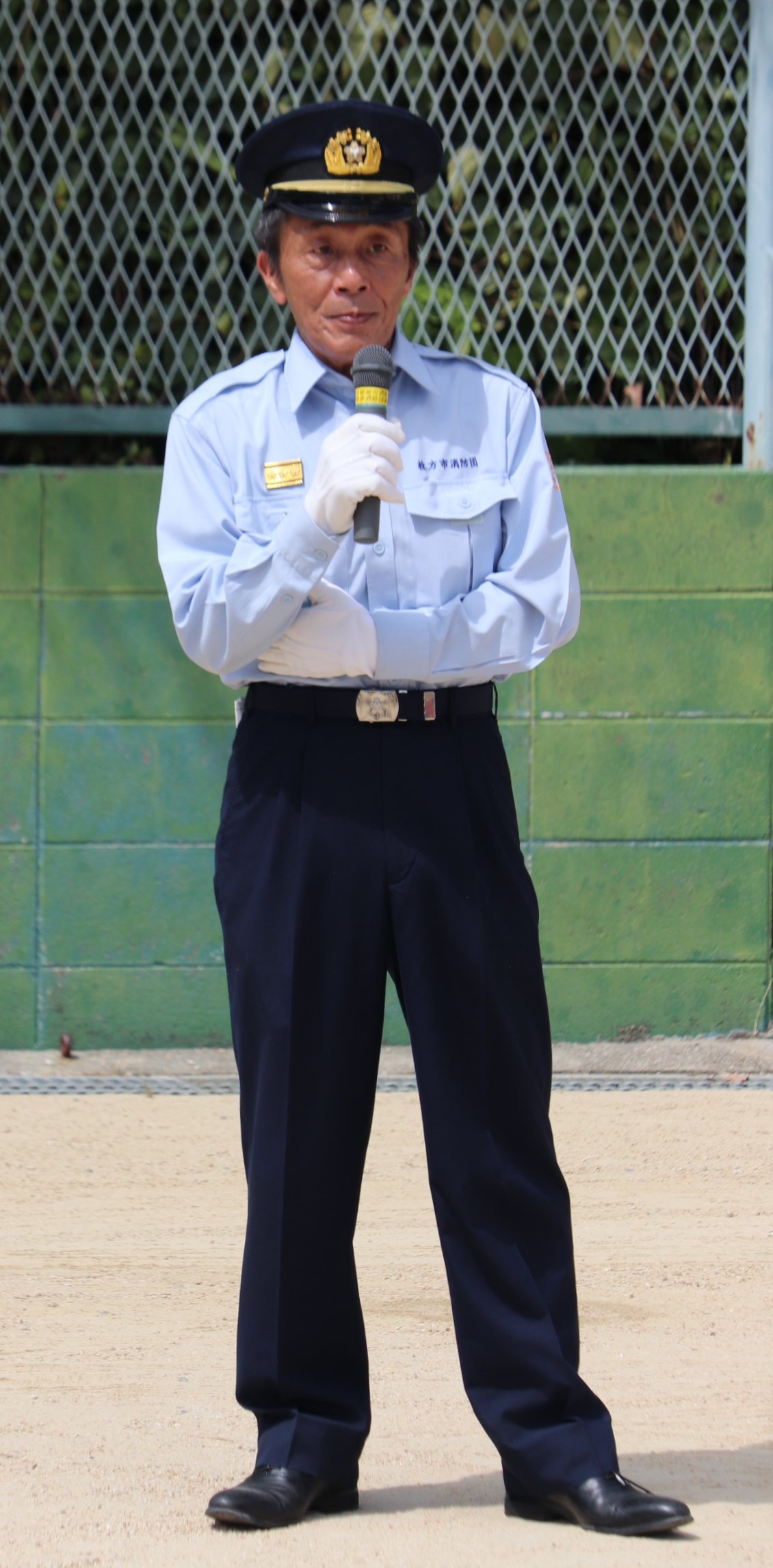 .そして最後に枚方市消防団 中作平団長より、今回出場した団員とこの団員らを支えて頂いた関係者へ感謝の念が伝えました。