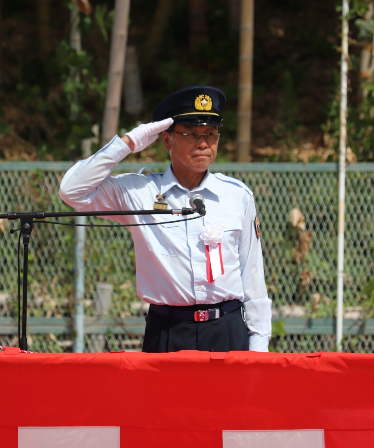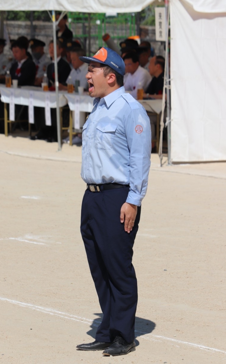 山田分団 谷村分団長は、日常の業務に於いても分団長として指揮を執る立場であり、手慣れた声の通る号令は会場全体に轟きます。