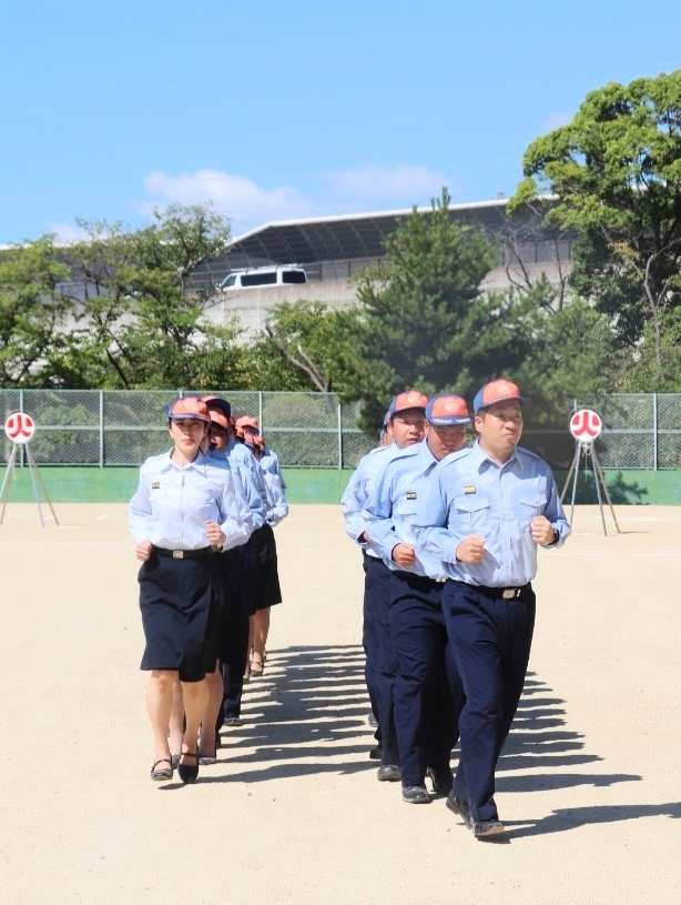 枚方市消防団では当大会で訓練披露を行うに際し、4分団から精鋭団員を招集し、令和6年8月7日より訓練に練磨してまりましたが、訓練披露当日に於いても大会での披露を万全の態勢で臨める様、早朝から練習に励みました。