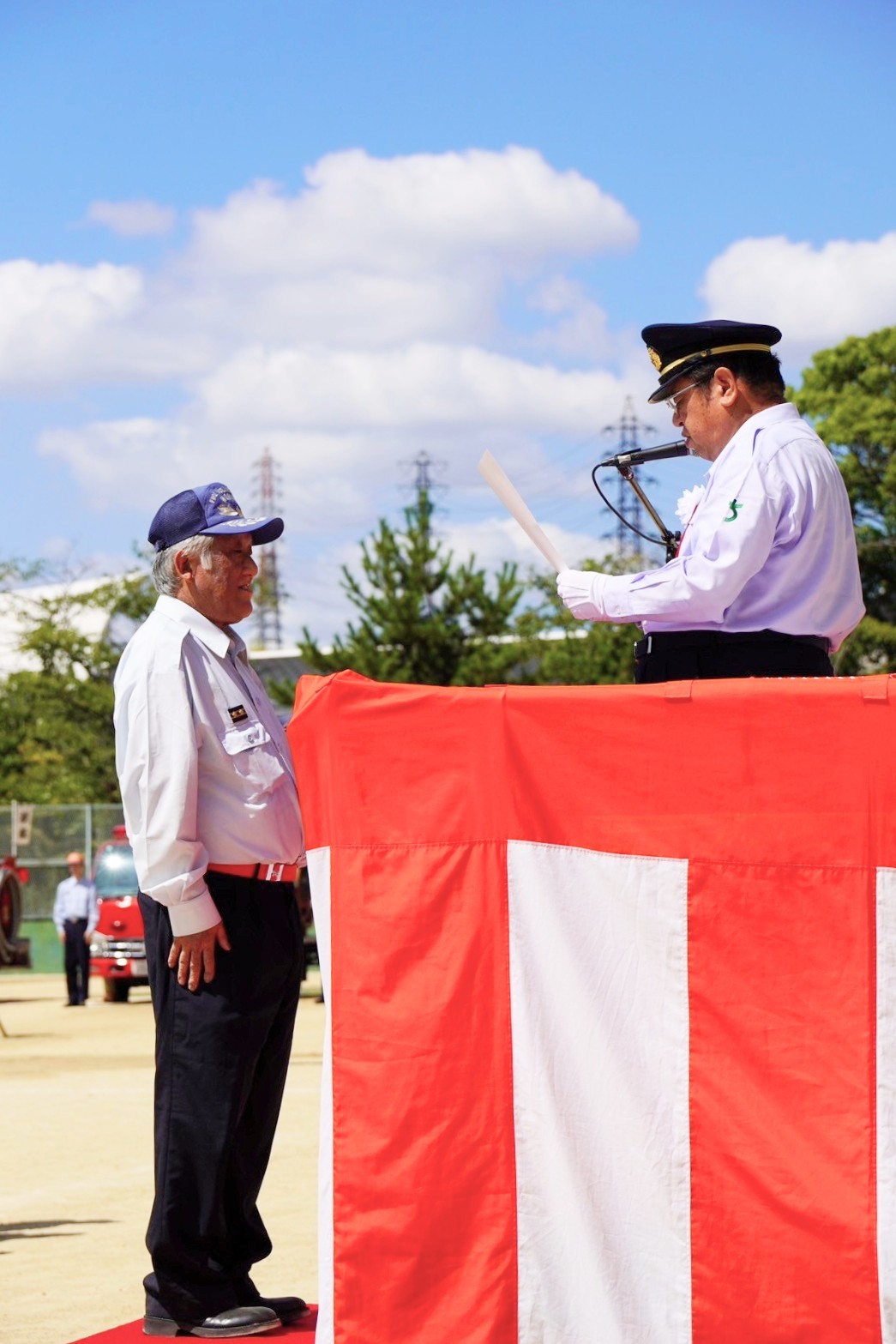 そして枚方市消防団9名の代表として、枚方分団の団員が表彰を受けました。