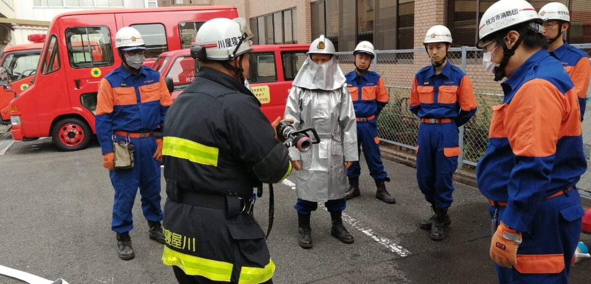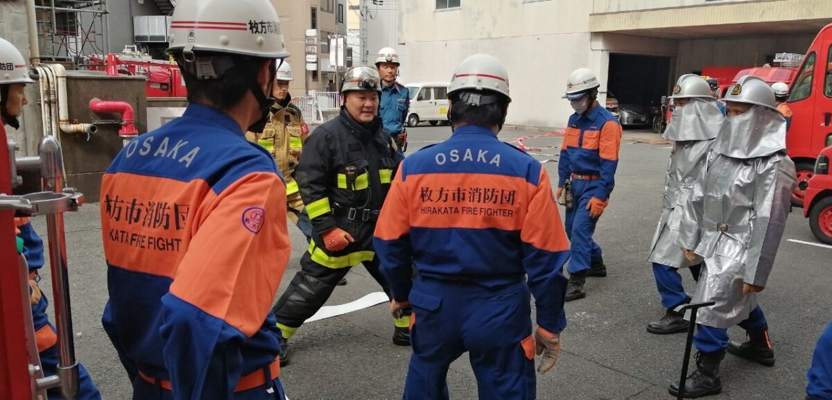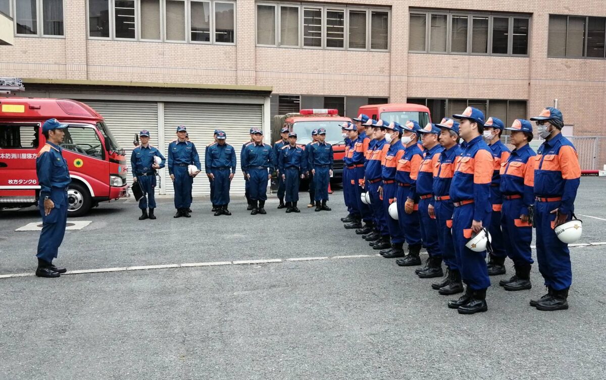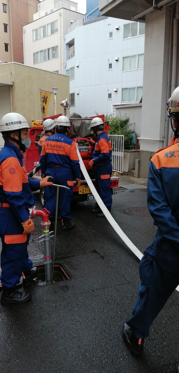 新入団員を含む未経験の団員も各分団にいることから、枚方市全分団に対し、枚方市管轄の消防署職員の指導のもと訓練を行うことになりました。