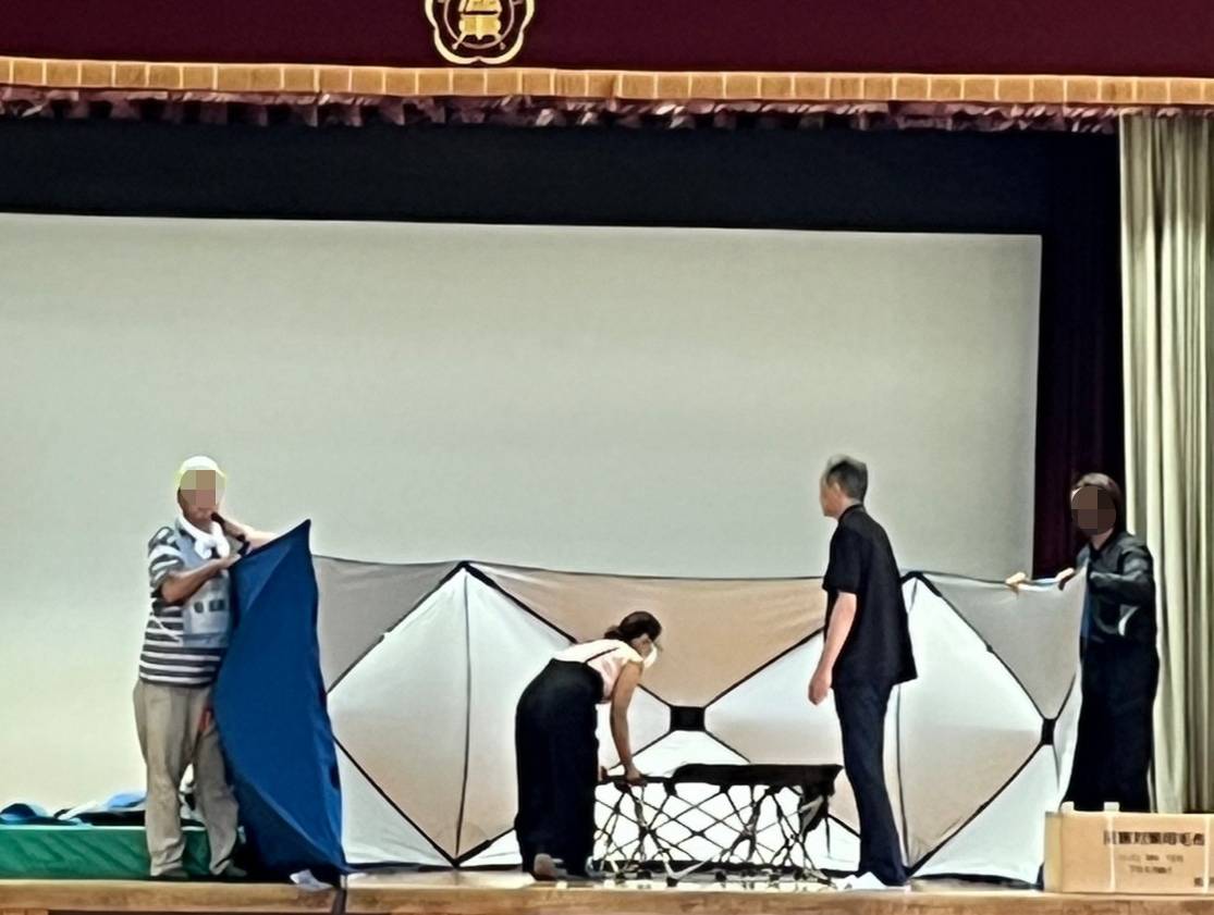 地域防災役員からは、避難所で使用する簡易ベッドとパーティション組み立て方法の実演と、枚方市危機管理部職員より防災へ備えるための講義が行われ、災害から身を守るためには、日頃からの準備と早期避難の大切さを教えていただき訓練は終了しました。