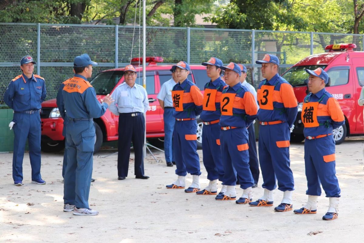 令和元年度の北河内地区支部総合訓練大会では、枚方市消防団から菅原分団が小型ポンプ操法の部において出場し、選手全員が最大限の力を振り絞り、一丸となって好成績が収められる様、ポンプ操法披露に臨みました。