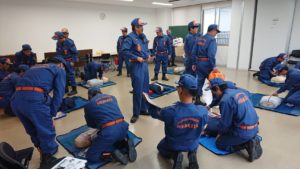 今回氷室分団では、ポンプの操作説明の前に併せて救命講習訓練も実施致しました。